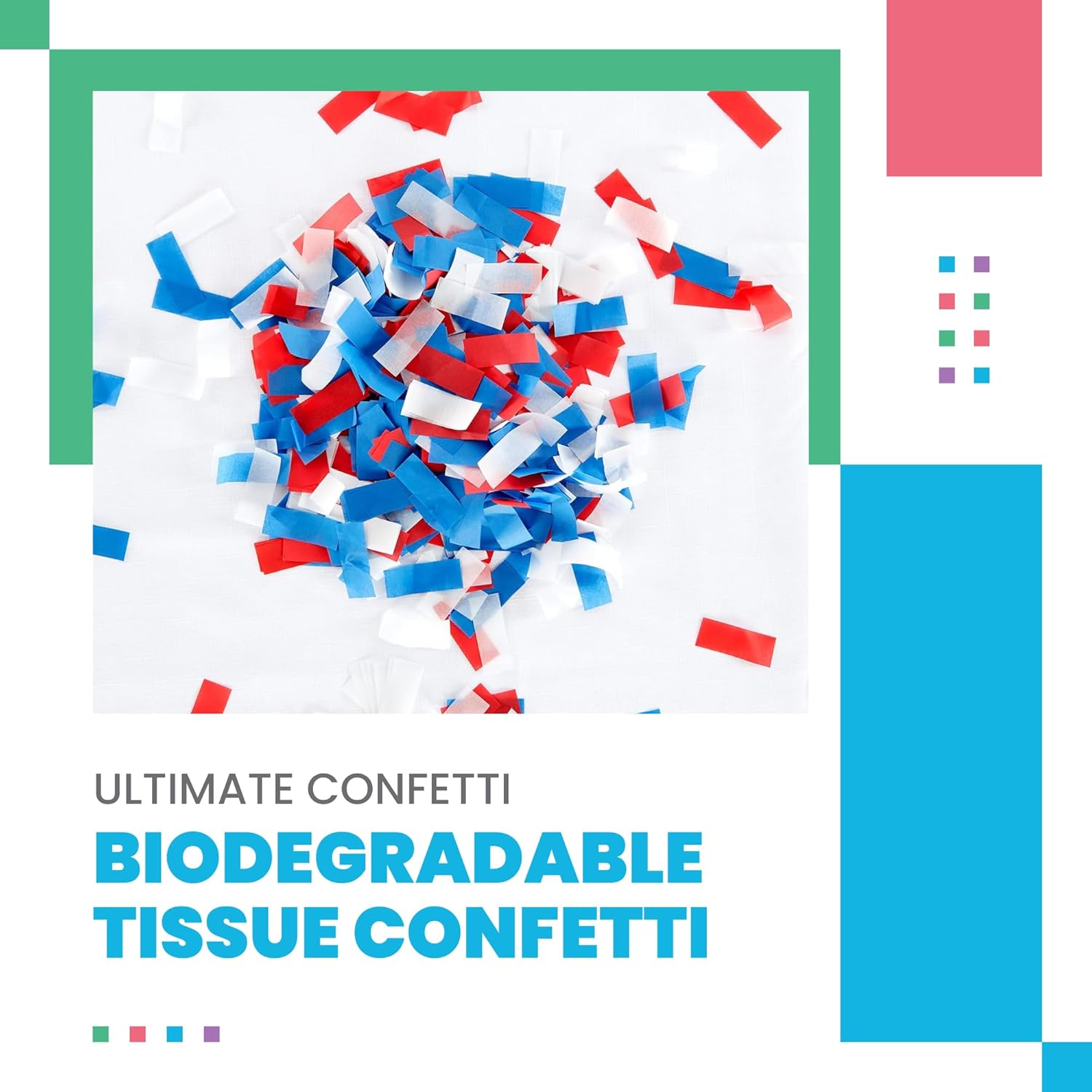• Sustainable Celebration with Natural Charm: Crafted from biodegradable tissue, the white, blue, and red confetti provides a festive way to celebrate responsibly. Add a colorful, earth-conscious touch to your parties, whether you're hosting events in open spaces or enclosed settings.
