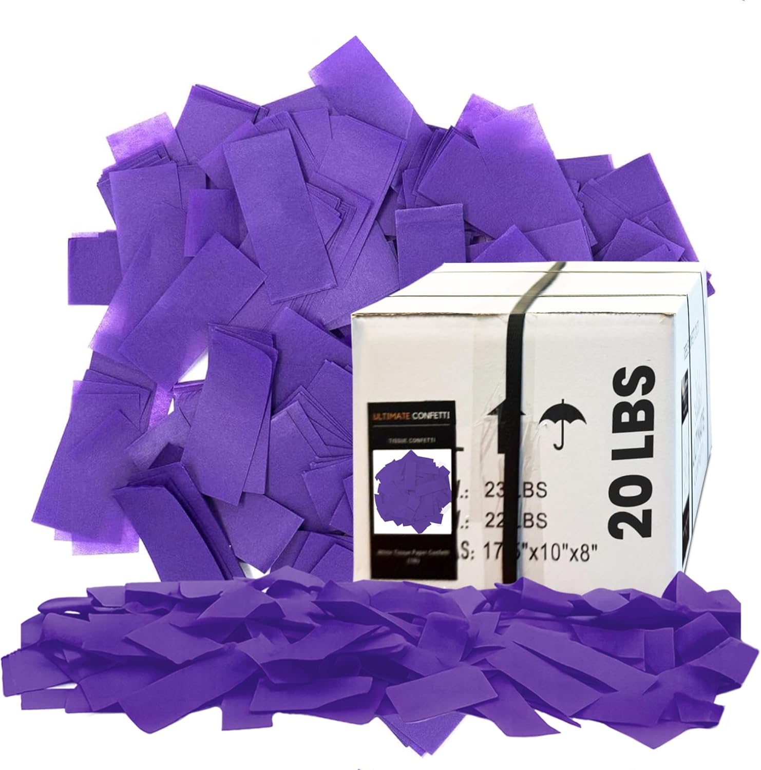 Purple Biodegradable Confetti - Rectangular Fluttering Tissue Paper Confetti for Cannon and Launcher use – Best for Gender Reveal, Parties, Concerts and Weddings - 20 lb, 320 oz
