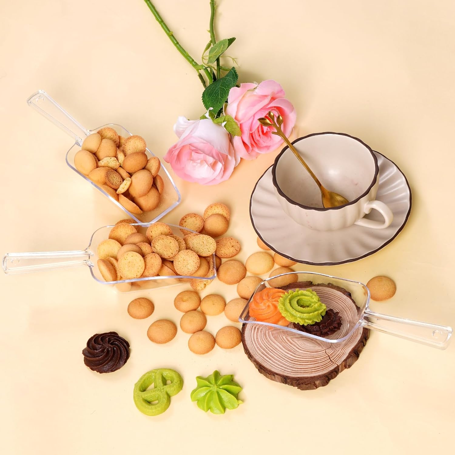 • Elegant for Events and Bars: These clear plastic scoops add a touch of elegance to your party, wedding, or bar setup. They are perfect for popcorn bars, candy stations, and serving various snacks