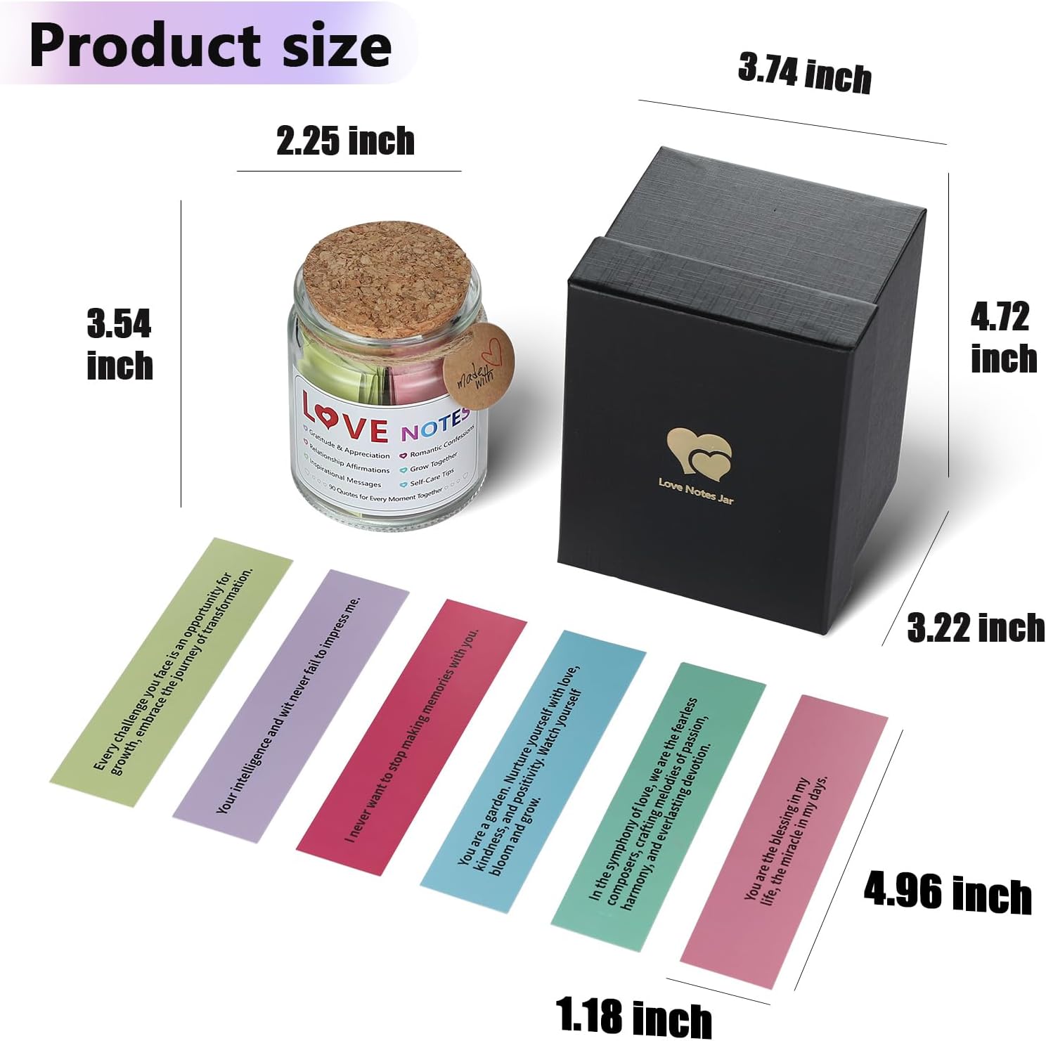 • Quality and Elegance Combined: The glass jar is made of high-quality, clear glass that showcases the colorful love notes inside. The jar is durable and well-crafted, with a smooth finish. The lid fits snugly to keep the notes safe and protected. The love notes are printed on fine paper with beautiful fonts, adding an element of elegance. We ensure that this product not only conveys love but also exudes quality and style