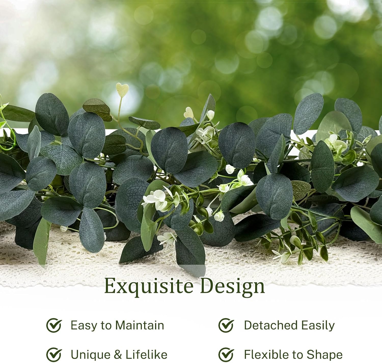 • 【Realistic Greenery Garland】Our Eucalyptus Garland features a lifelike design that mimics real plants. The vine includes shapeable wire, allowing you to bend and adjust the garland's shape to fit various decorative scenes effortlessly, giving you endless styling options.
