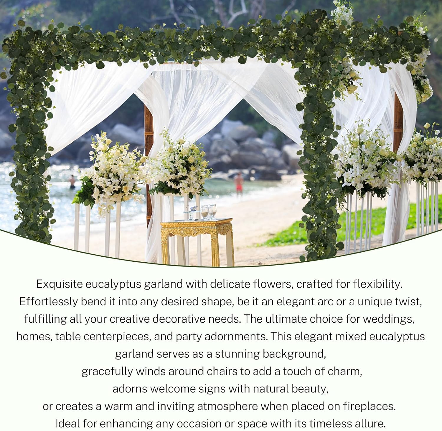 • 【Multi-Functional Decorative】Enhance your space with this versatile greenery garland decor! Perfect for table runners, mantle, centerpieces, wedding flower arches, wall decorations, and more. Whether you're looking to create a romantic atmosphere or add a touch of beauty to your life, this eucalyptus decor is the perfect choice for any setting.