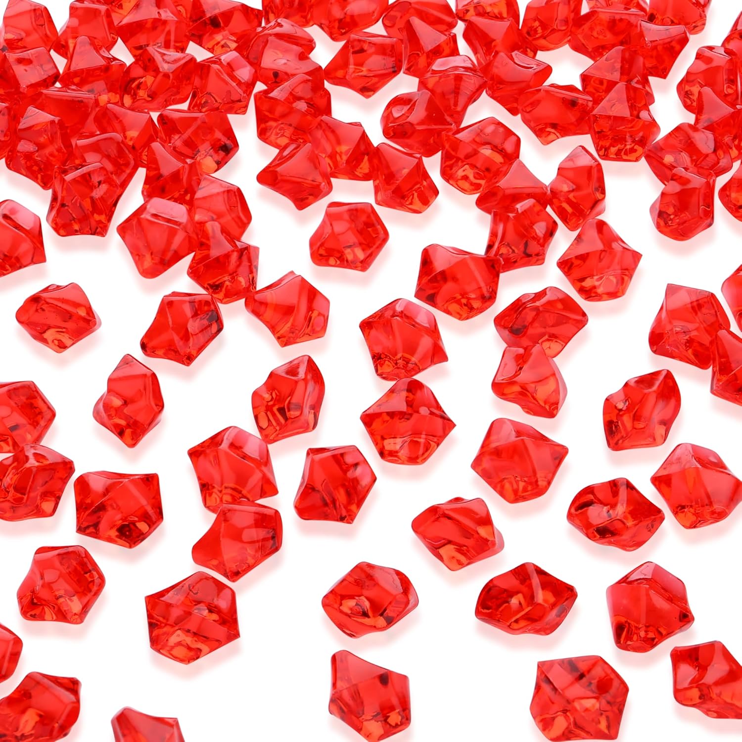 YATOJUZI 500pcs Fake Ice Cubes Red Acrylic Crushed Rocks Vase Fillers Plastic Diamonds Gems for DIY Party Wedding Centerpiece Table Scatter Prop Display 0.5" (Only Red)