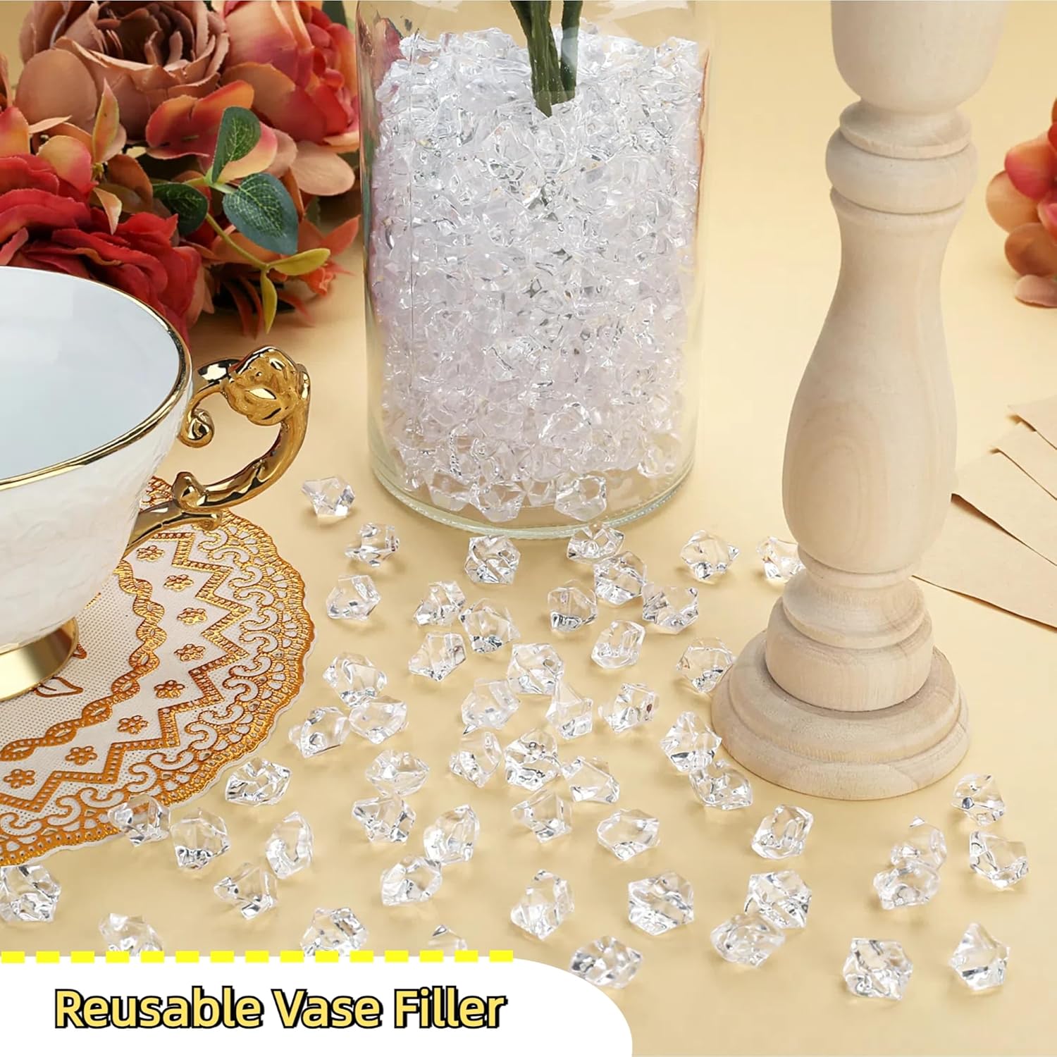 • 【Tips】Although acrylic vase fillers are lightweight, they will sink in water and will not float. Also, they cannot be used to cool drinks or be eaten! Do not eat them by mistake!