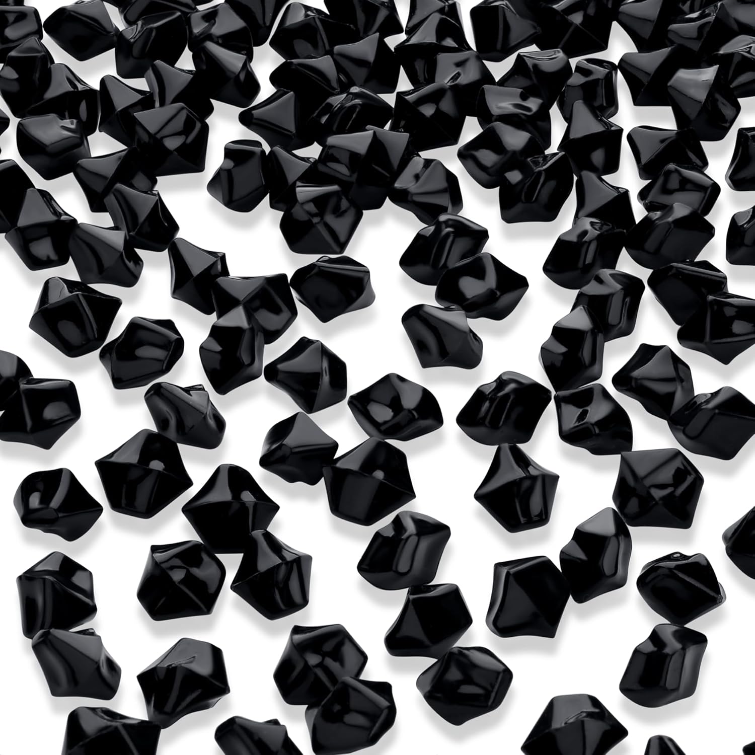 YATOJUZI 500pcs Fake Ice Cubes Black Acrylic Crushed Rocks Vase Fillers Plastic Diamonds Gems for DIY Party Wedding Centerpiece Table Scatter Prop Display 0.5" (Only Black)