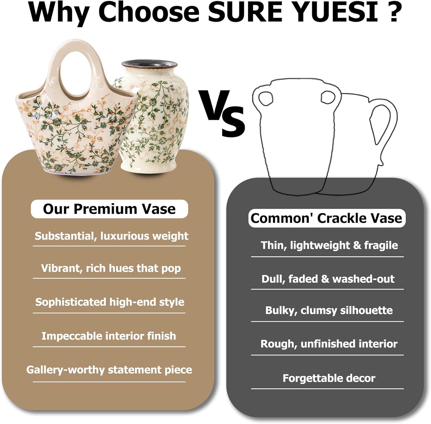 • Unique Artistic Design: The SURE YUESI handcrafted handbag-shaped ceramic vase combines rustic charm and vintage elegance. Its distinctive and elegant design makes it perfect for holding flowers or serving as a standalone decorative piece, elevating your decorative vases for home decor collection.