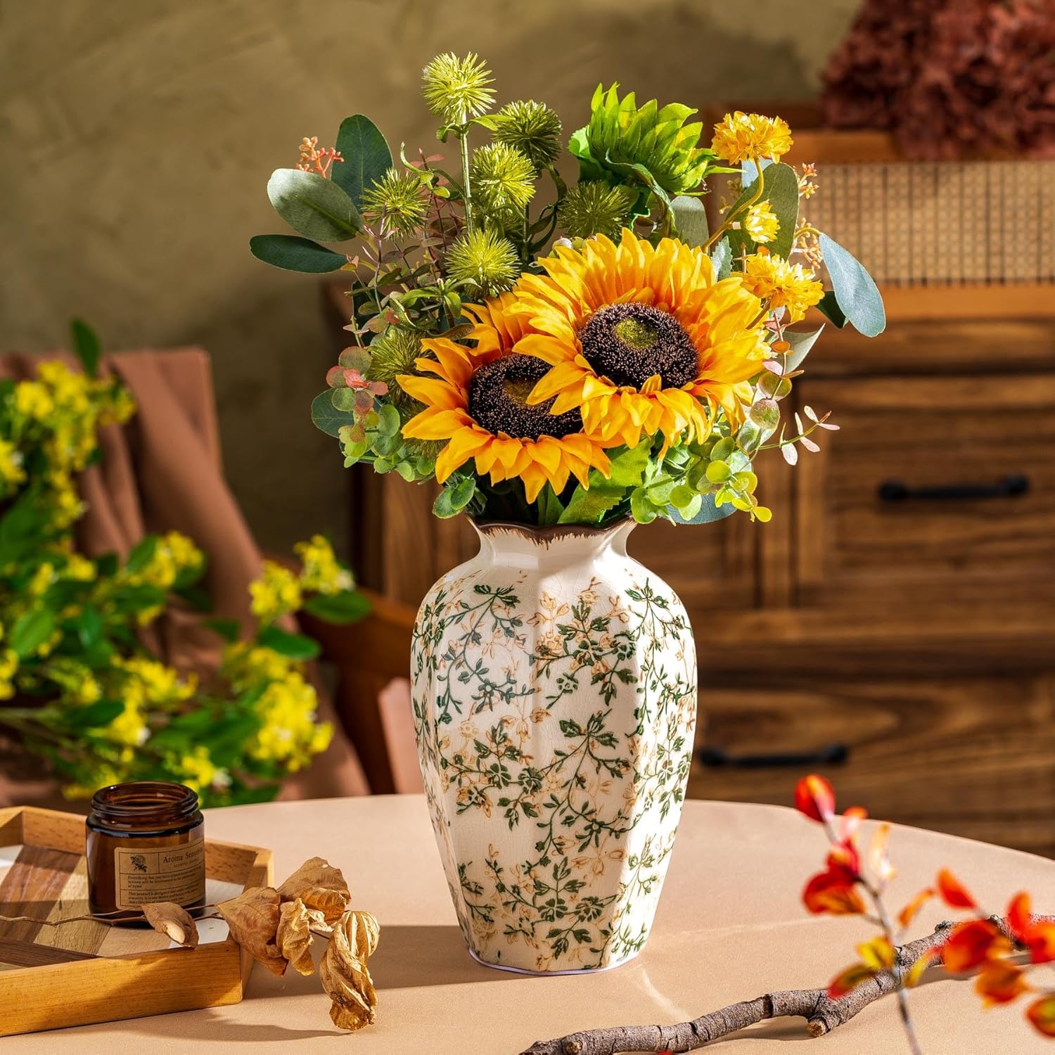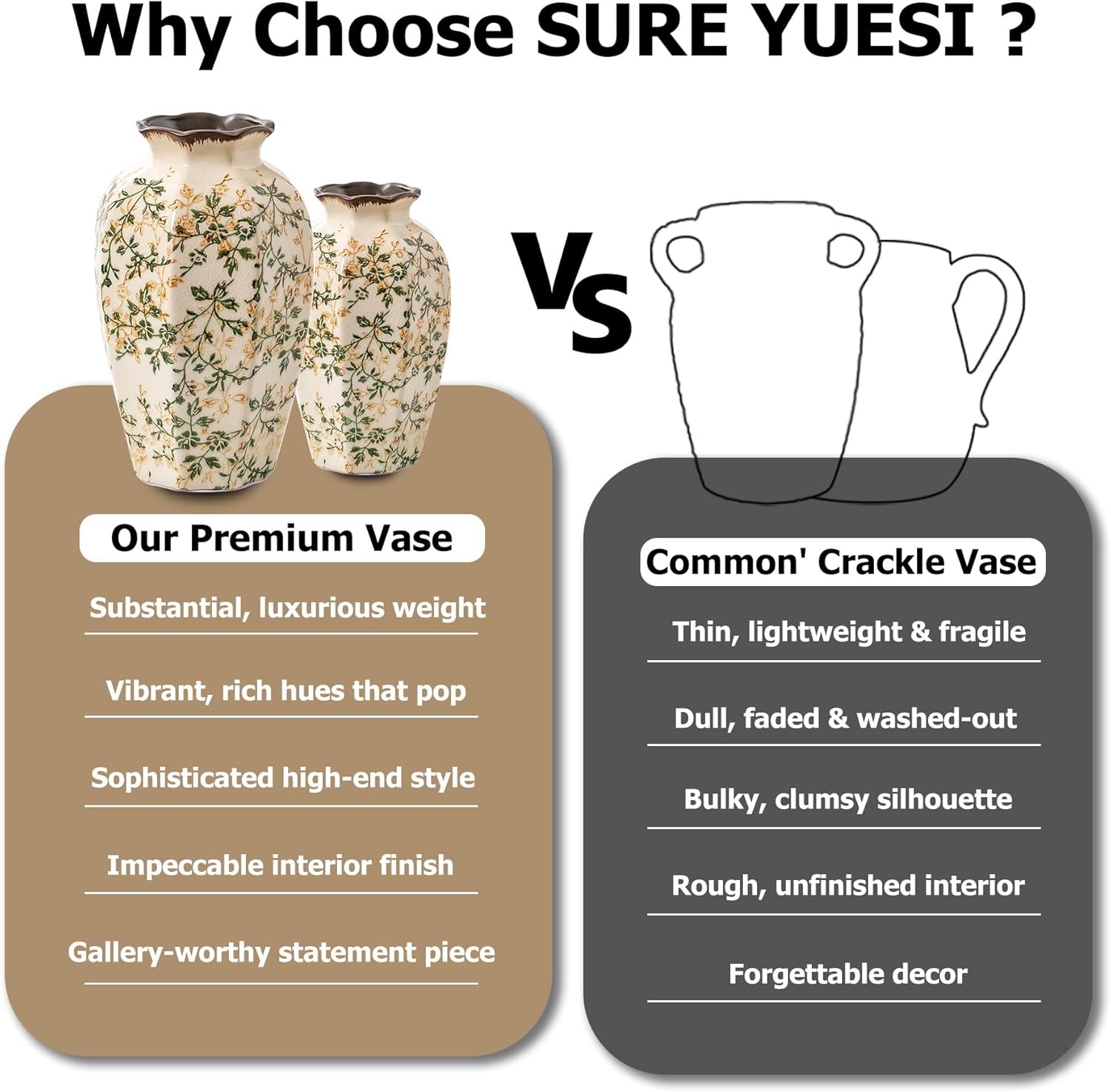 • ELEGANT DESIGN: The SURE YUESI handcrafted pastoral octagonal vase features a unique green and beige design with a vintage-inspired silhouette. This decorative ceramic vase is perfect for adding rustic charm to your home décor, making it a standout piece for green vases home decor, farmhouse vase collections, or chinoiserie decor.