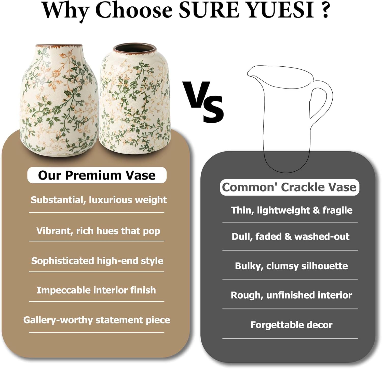 • 【Perfect for Various Decor Styles】These ceramic vases feature a timeless green and beige design that complements vintage home decor, rustic vase themes, and farmhouse vase styles. Whether placed in the living room, bedroom, kitchen, or on a Rustic Table Centerpiece, this set seamlessly enhances chinoiserie decor, grand millennial decor, and Tuscan decor aesthetics.