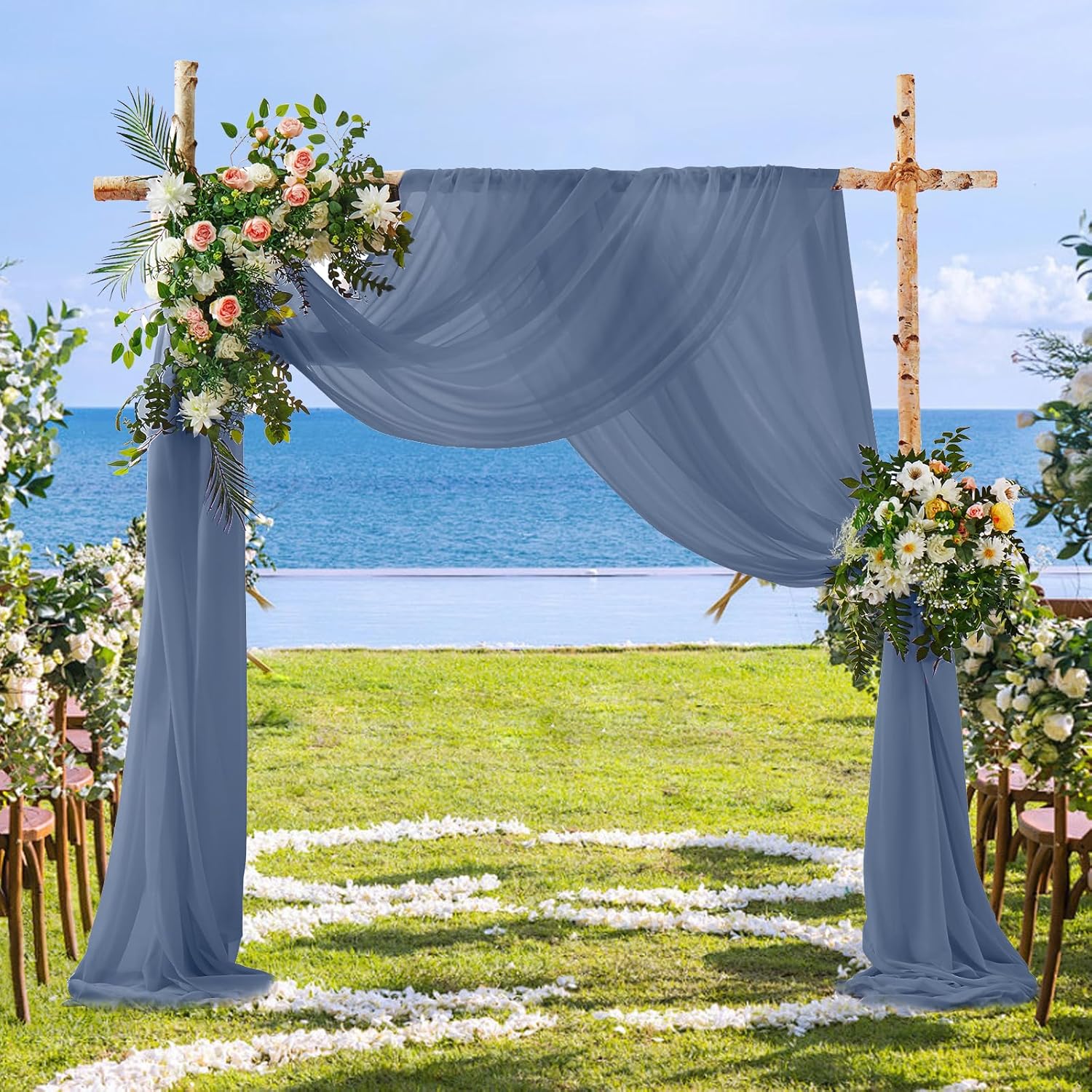 SiinvdaBZX 2 Panels Wedding Arch Draping Fabric 30" x 20Ft Dusty Blue Sheer Chiffon Fabric Outdoor Extra Long Decorative Drapery Fabric for Party Ceremony Ceiling Curtain Backdrop