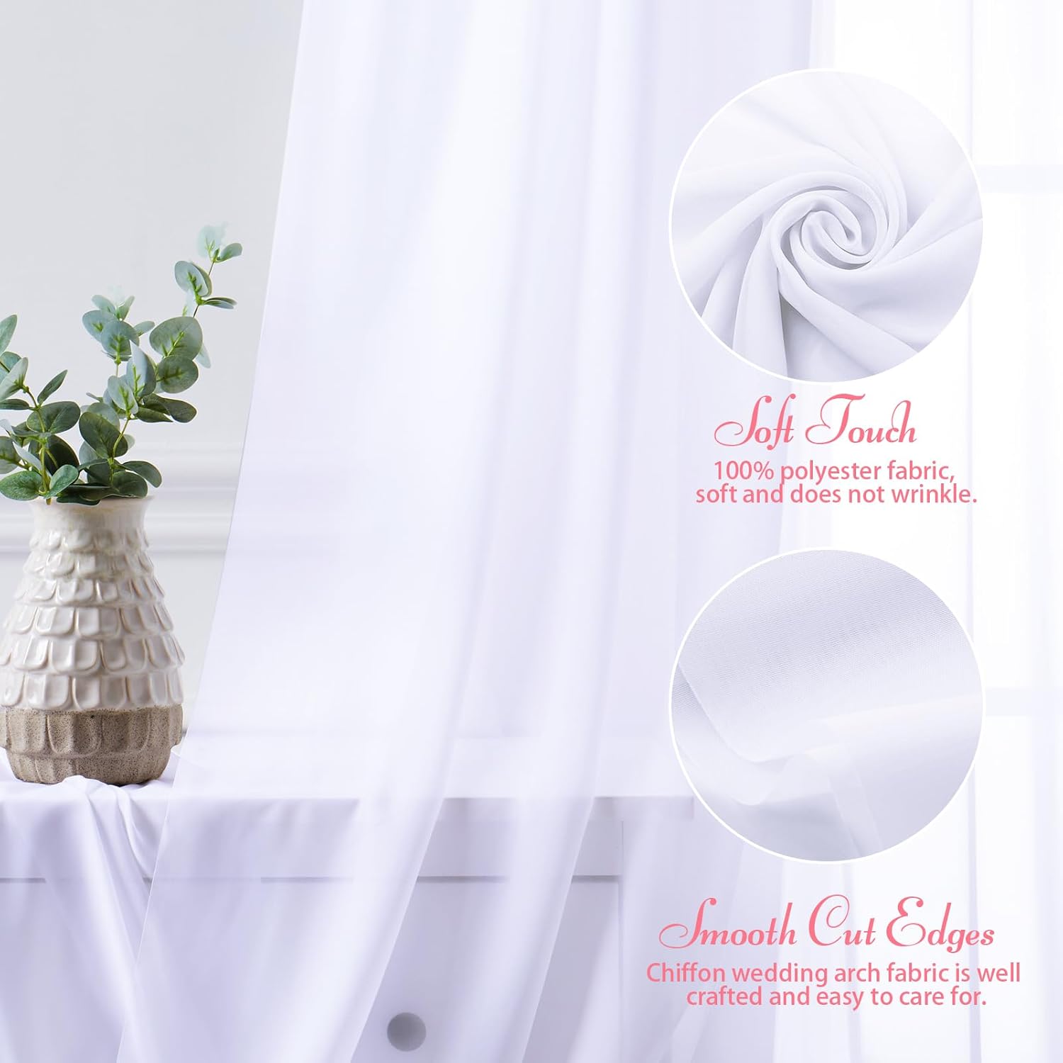 • Package & Size Flexibility: You will receive 2 Panels of wedding arch drapery fabric, the dimensions are 240" long x 30" wide. The chiffon draped fabric is available in a maximum length of 6.6 yards, which can be adapted to fit any size arch decoration, cut and DIY as needed.