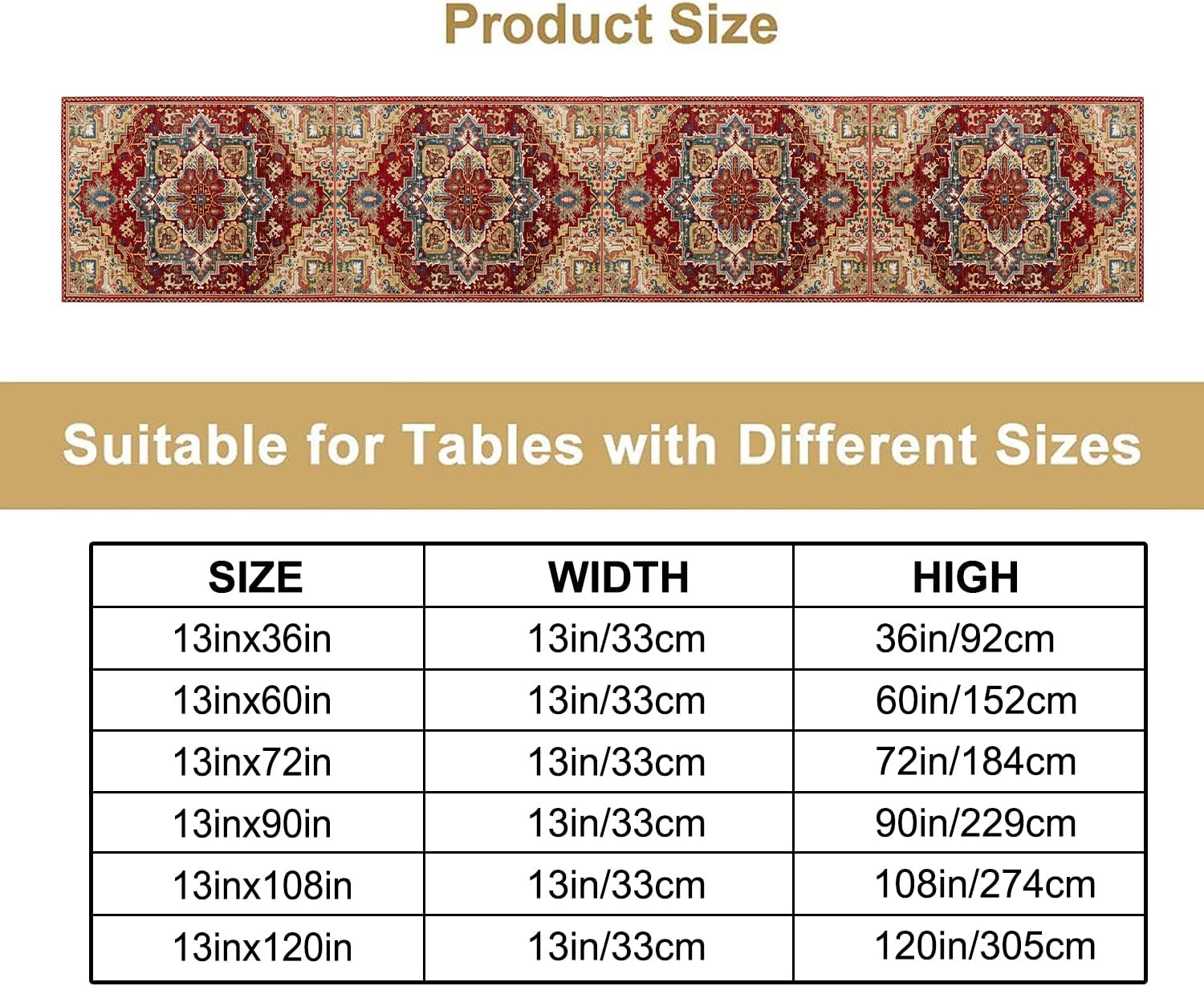 • Product Size : This tablecloth is 13 in ( 33 cm ) x 108 in ( 274 cm ), suitable for tables that can accommodate 8-10 people,better match your table and give you a pleasant dining experience