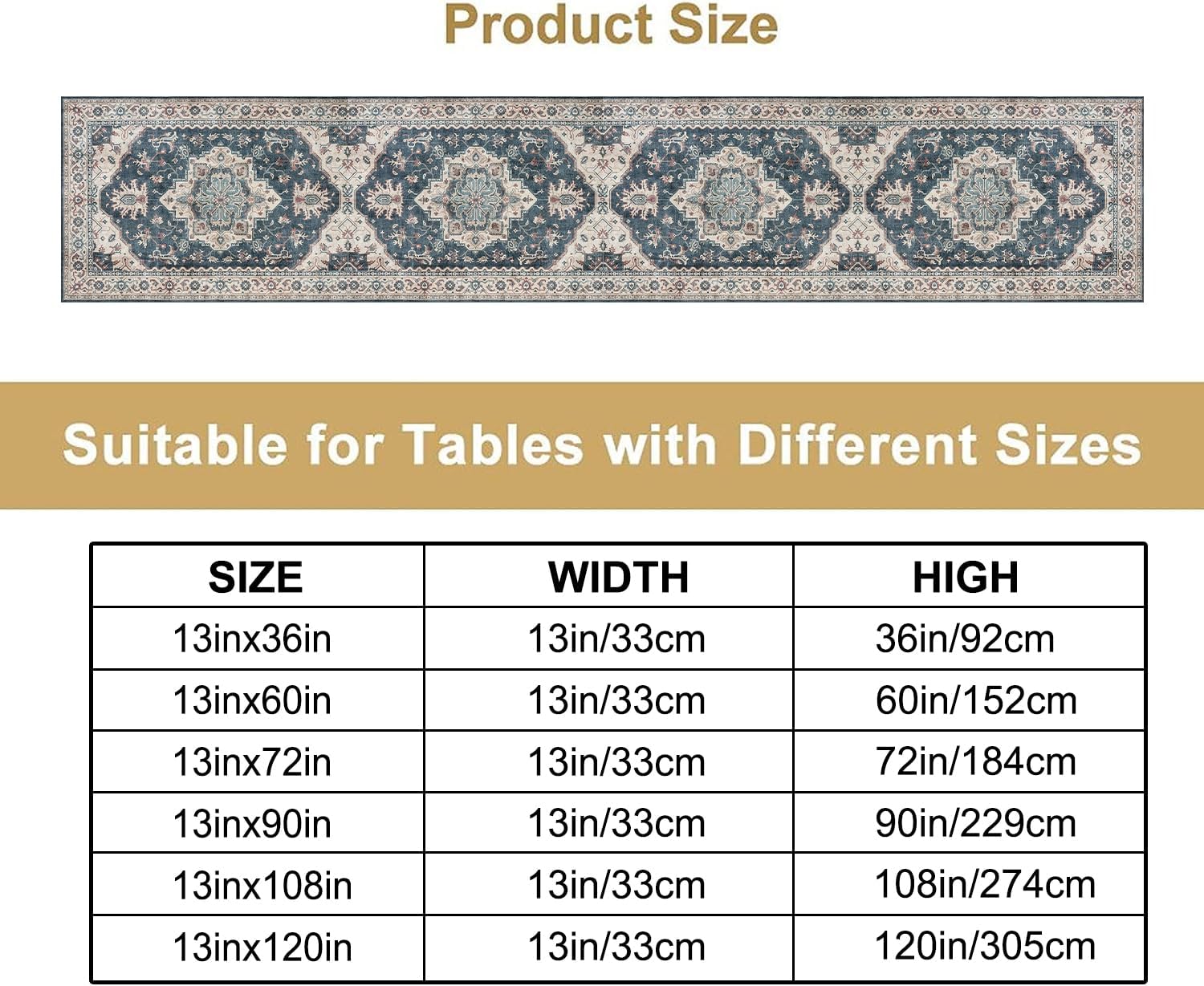 • Product Size : This tablecloth is 13 in ( 33 cm ) x 108 in ( 274 cm ), suitable for tables that can accommodate 8-10 people,better match your table and give you a pleasant dining experience