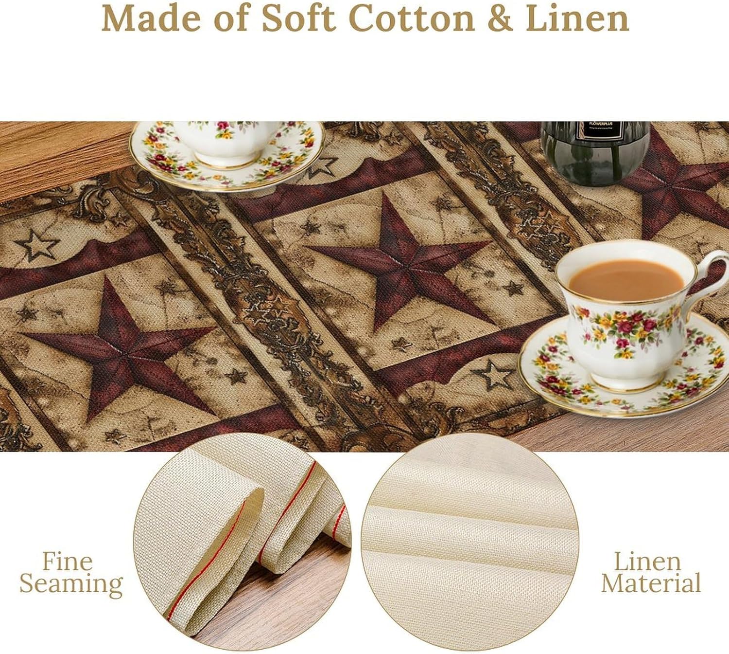 Wild West Table Runner, Rustic Farmhouse Texas Star Vintage Rodeo Cowboy Old Sign Wild West Print Pattern for Home Kitchen Table Decor Dining Coffee Room Garden Party Decor 13x72in