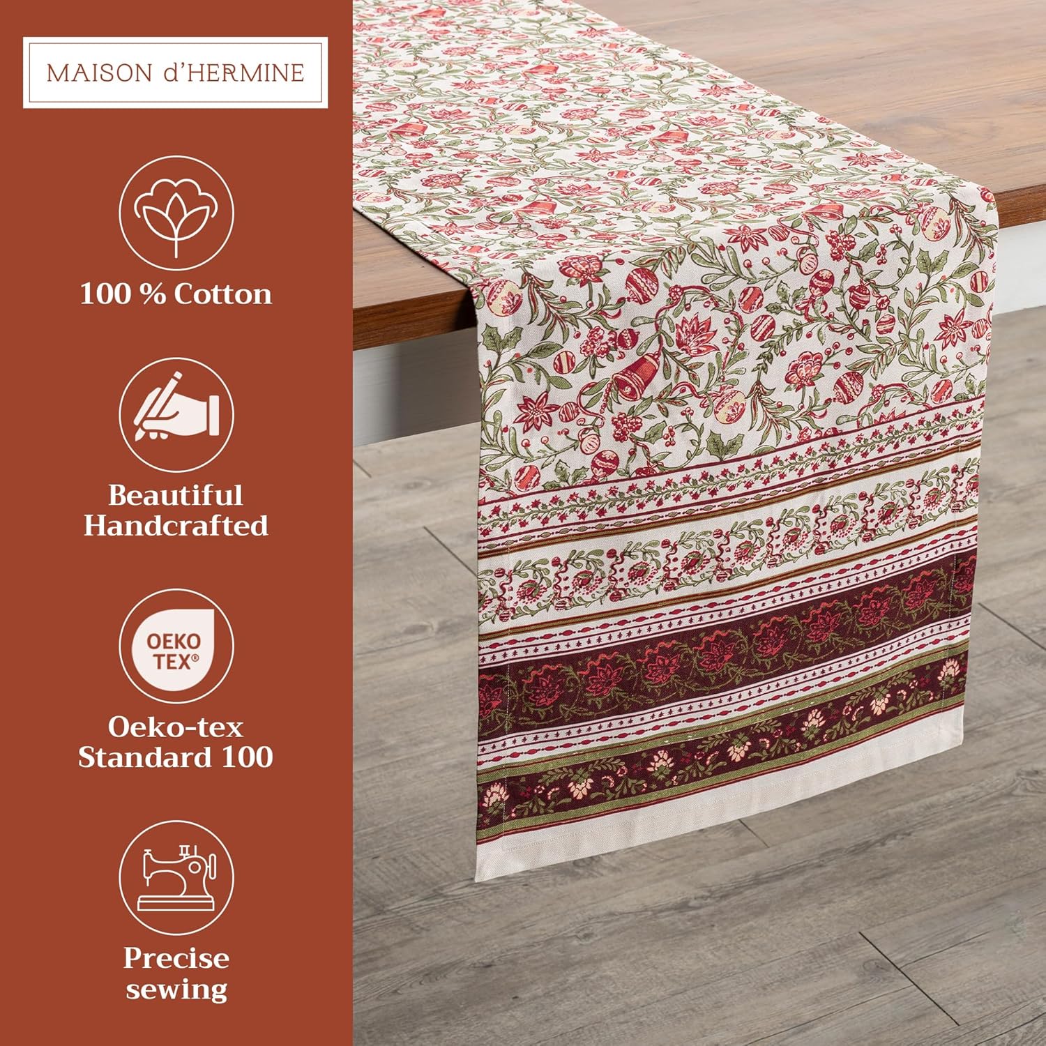 Maison d' Hermine Table Runner 100% Cotton Single Layer Table Runners 72 inches Long for Thanksgiving Christmas Decorations Home Kitchen Dining Party Wedding (Reveillon Au Jardin, 14.5" x 72")