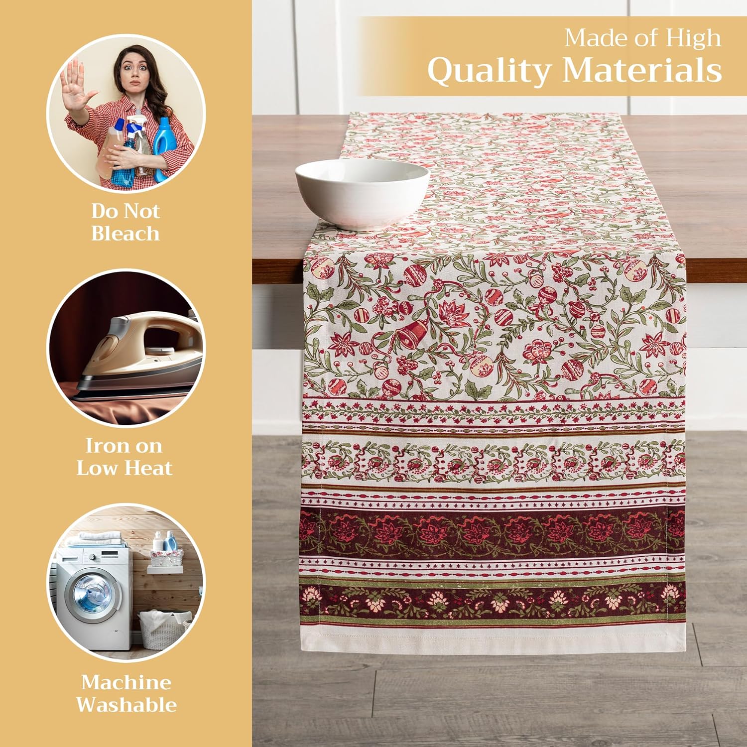 • Enhance Your Home: Crafted from 100% cotton, this reusable table runner adds a warm, seasonal touch to your dining decor. Ideal for Thanksgiving, Halloween decorations, or Christmas decorations—pair it with matching linens for an elegant fall or holiday gift