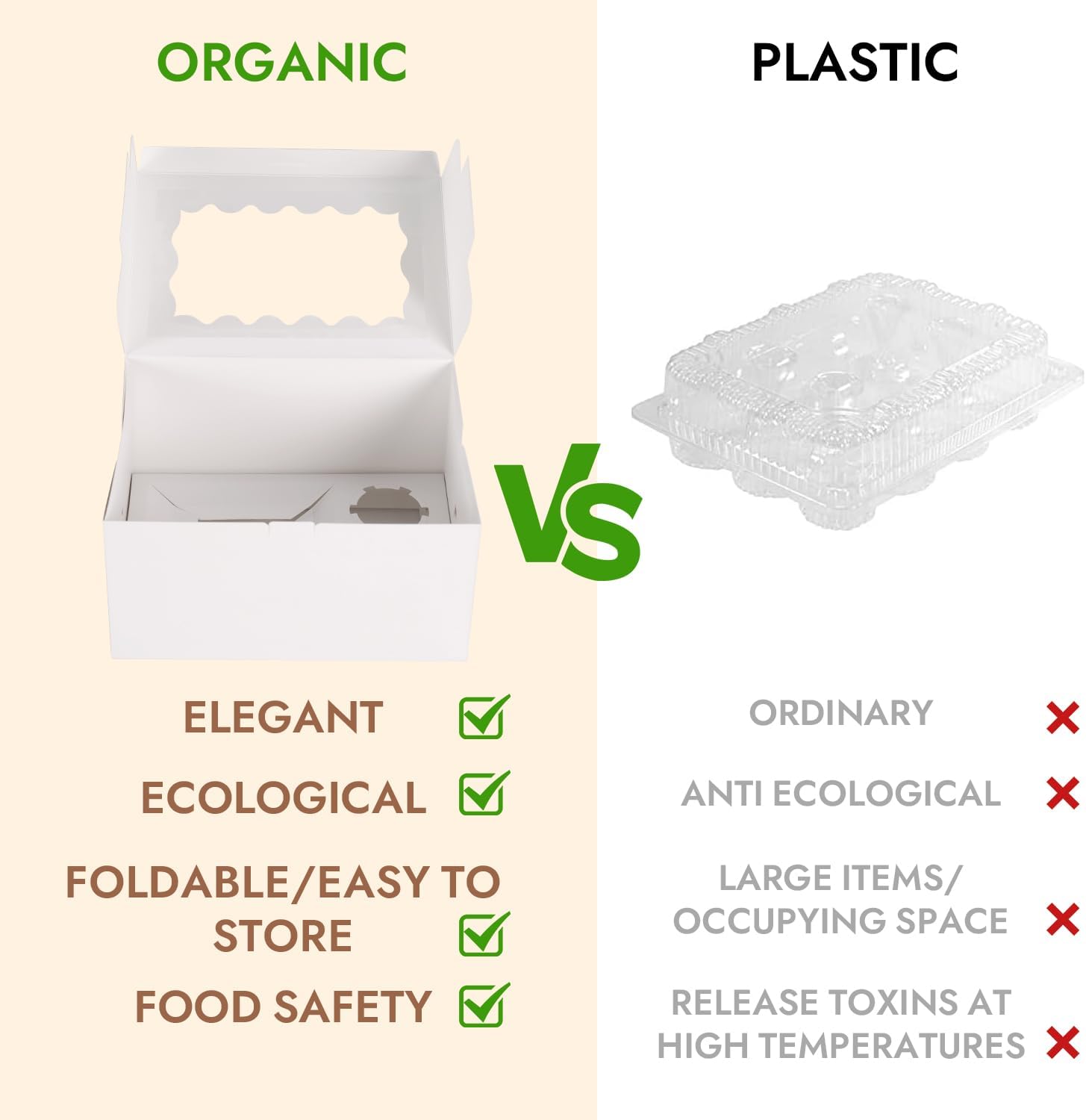 • Clear and Durable Design:Perfect for showcasing and protecting your cupcakes, these clear cupcake boxes are made from sturdy plastic and quality cardboard. Ensure your treats stay fresh and presentable.The smooth white exterior of the bento cake and cupcake box not only gives it a sleek look, but also makes it versatile.