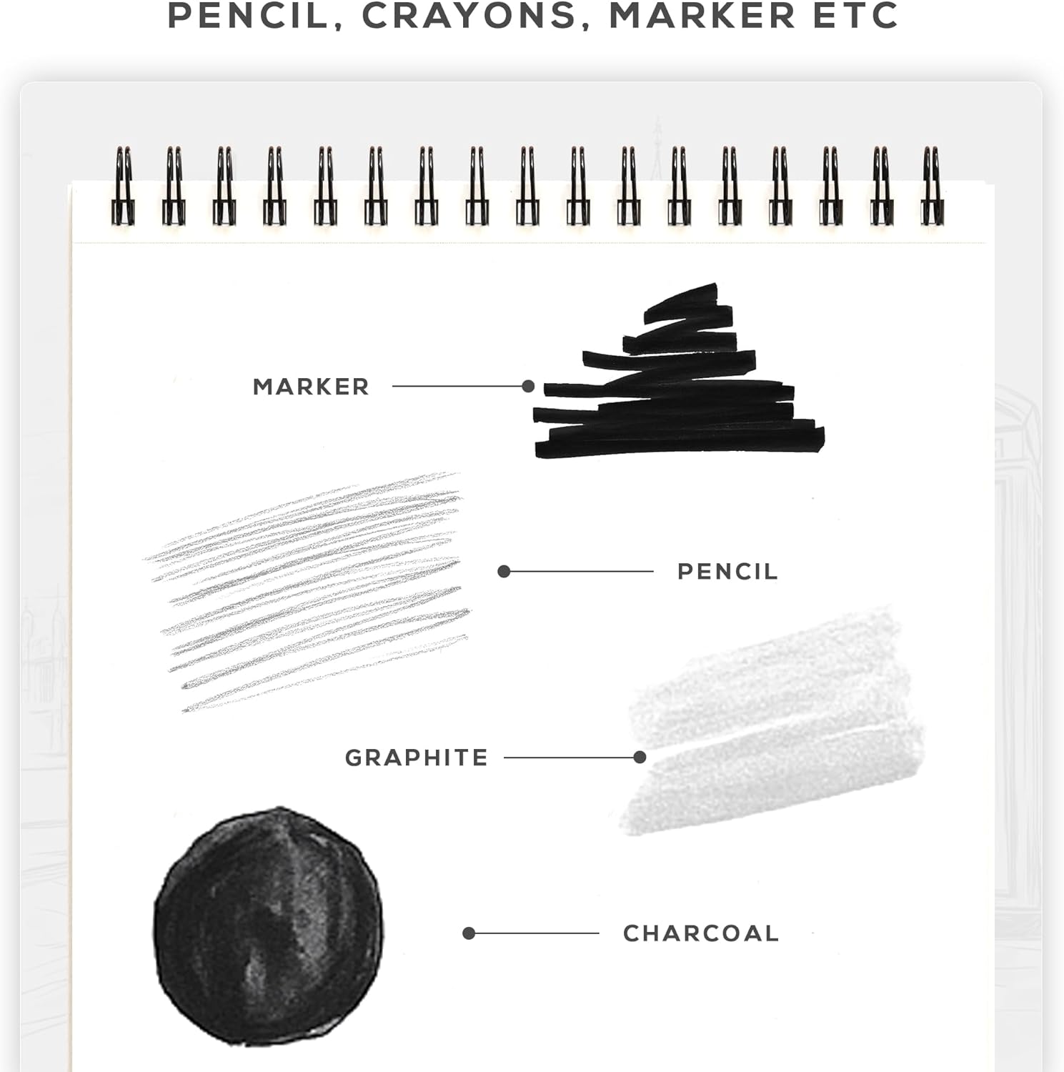 • Effortless Use & Lay-Flat Spiral Binding - Sturdy double-spiral binding keeps your sketchbook perfectly flat for seamless drawing and easy page turns. Work across full spreads or on single pages with total creative freedom.