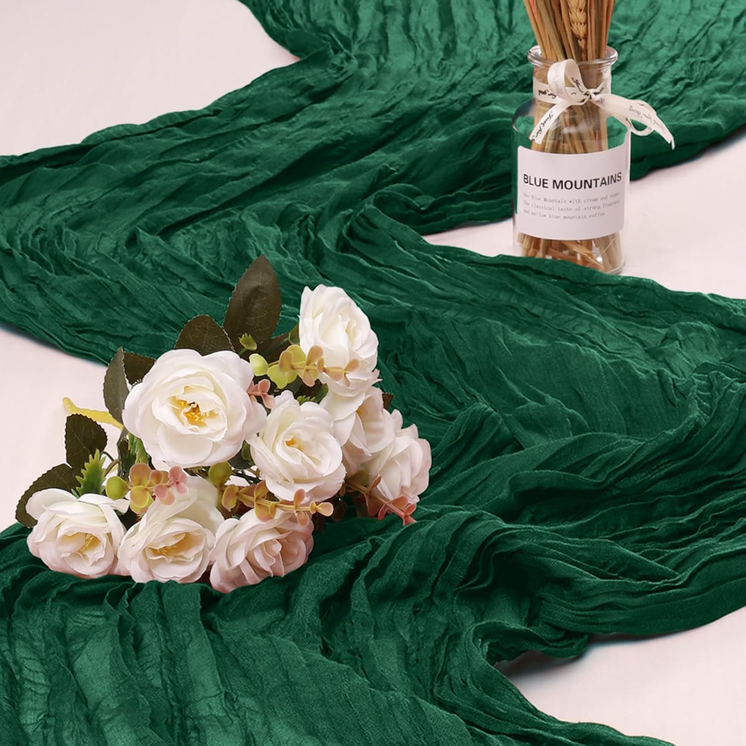• 【Soft Material】: Made of high quality polyester, soft to touch, comfortable and durable. Wrinkled design cheese cloth farbic, delicate edges and stitches, adopts seamless technique makes this sheer table runner more graceful than traditional fabrics. Our cheesecloth wedding table runners are durable, the colour stays for a long time, does not fade and can be reused.