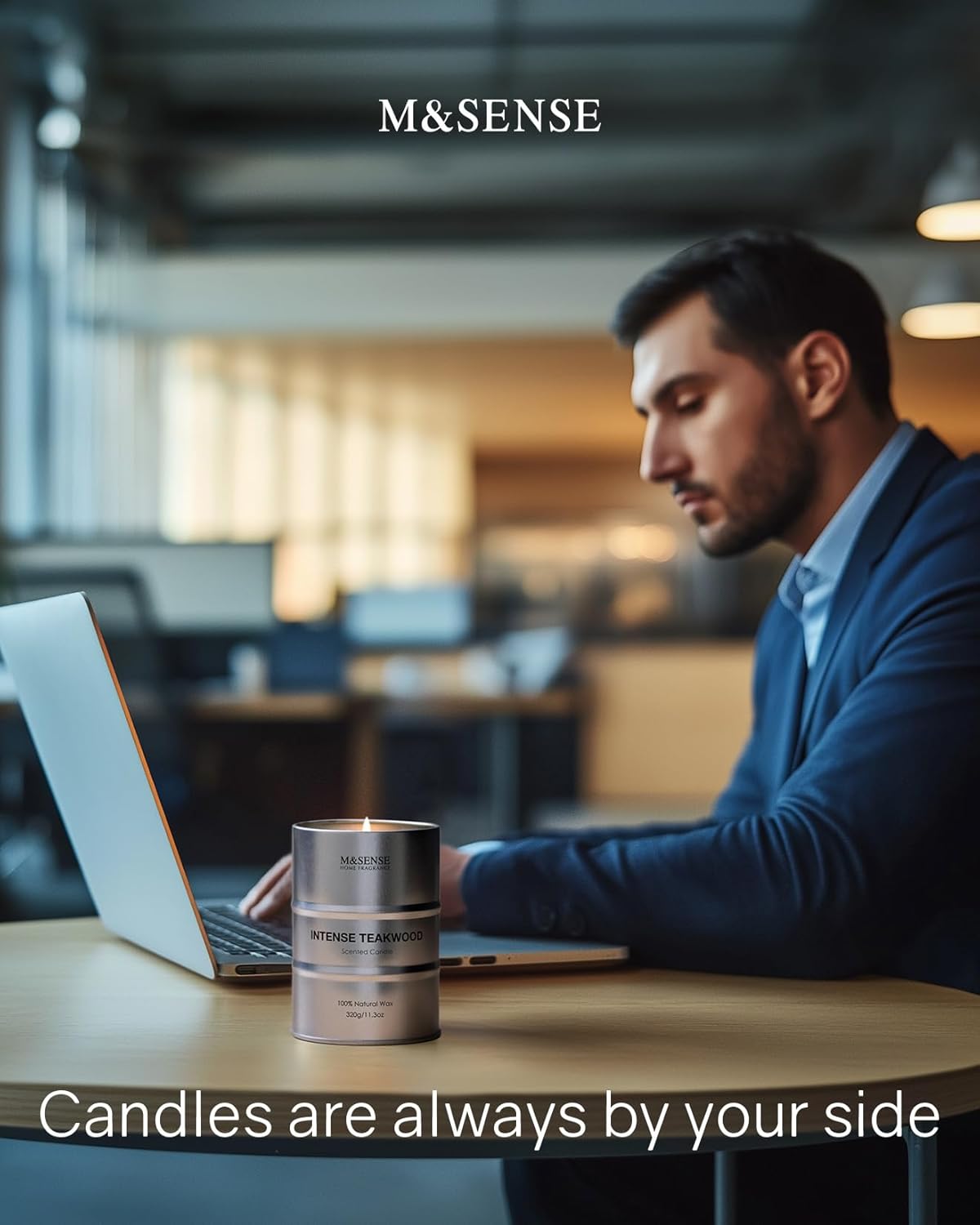 M&SENSE Scented Candle, Teakwood Medium Jar Candle Gifts for Men, 70 Hours Slow Burning Natural Soy Candles 11.3oz, Stress Relief Aromatherapy Candles Home Decor, Valentines Day Gifts for Him