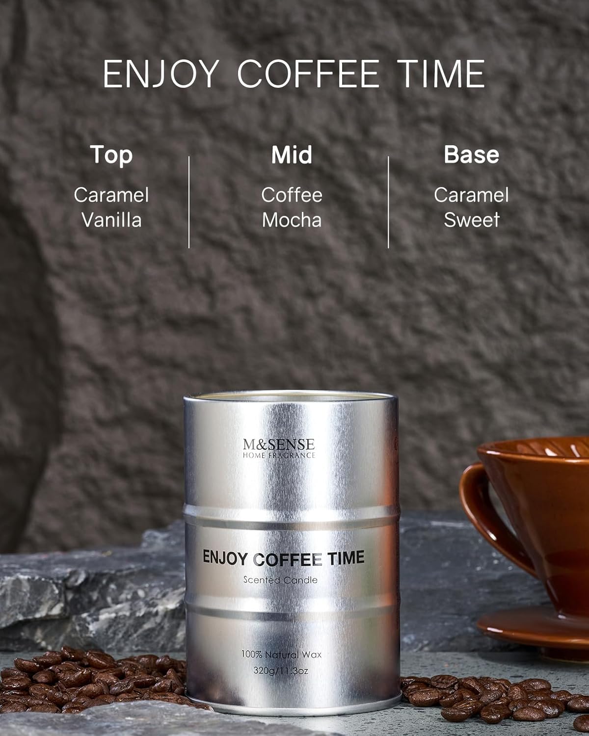 M&SENSE Scented Candle, Coffee Medium Jar Candle Gifts for Men, 70 Hours Slow Burning Natural Soy Candles 11.3oz, Stress Relief Aromatherapy Candles Home Decor, Valentines Day Gifts for Him