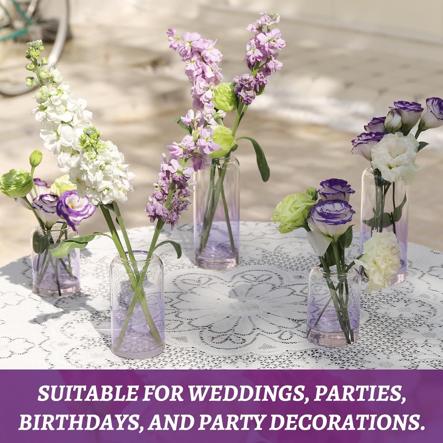 • Quality & Safety: Purple glass bud vases is made of selected premium thick borosilicate glass, hand-blown to a bright and high transparent finish with durable and sturdy. The top of the vase is smooth with no sharp edges, ensuring safety during the flower arrangement process. Note: Remember to add an appropriate amount of water according to the quantity and weight of the flowers for stability.
