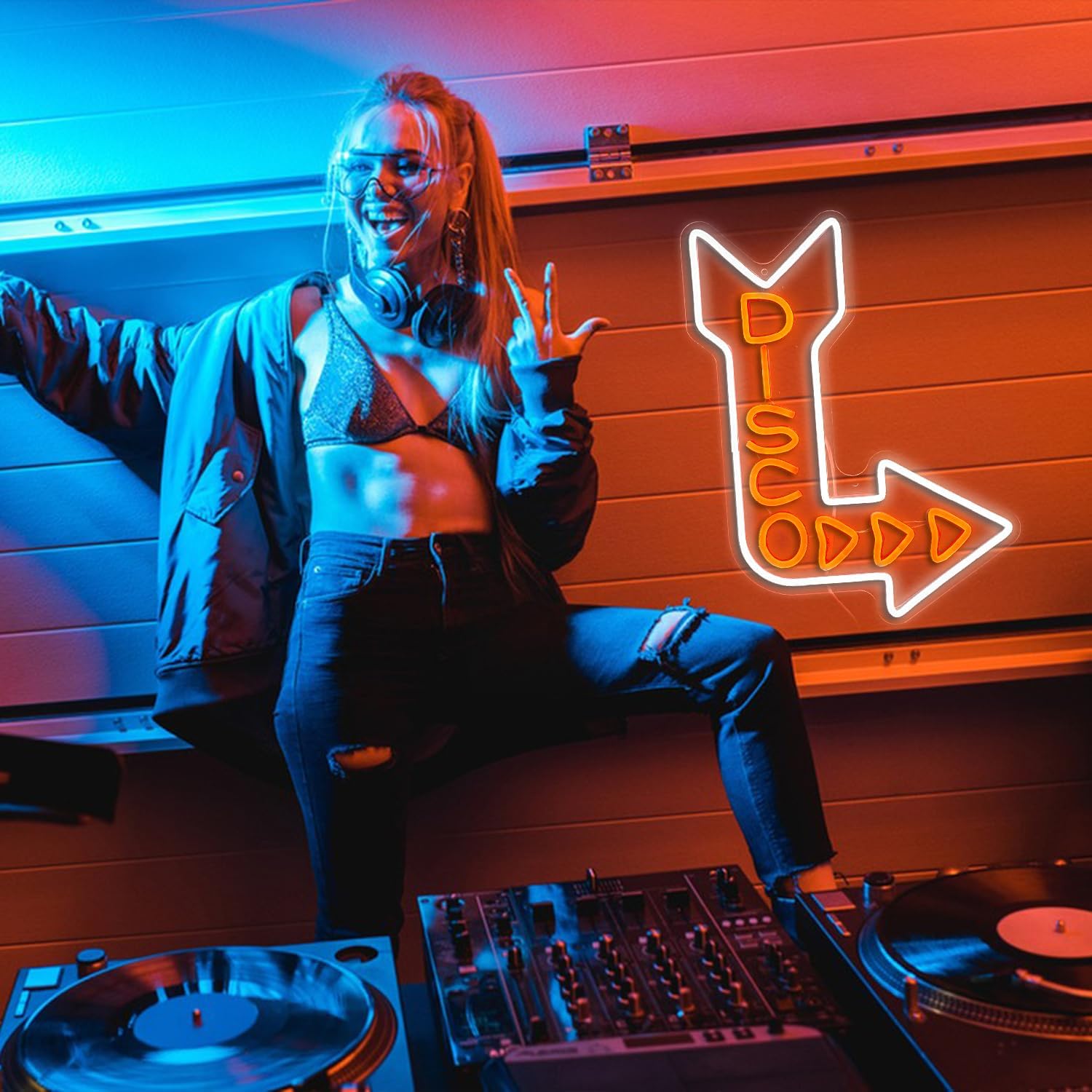 LED Disco Neon Sign Disco Guide Neon Light for Wall Decor Dimmable Led Disco Light Up Sign for DJ Music Bar Bedroom Party Music Concert Man Cave 16.5 * 12.6 IN