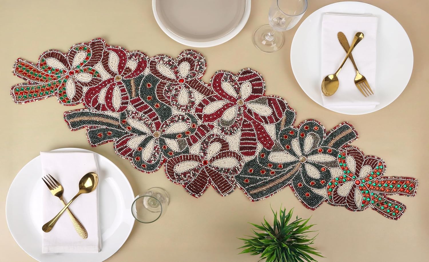 Elegant Glass Beads Table Runner 13x36 - Handcrafted Beaded Table Linen, Perfect for Weddings, Festive Celebrations, Dining Tables, Home Décor, and Everyday Use (Red White) - CLEENTABLE