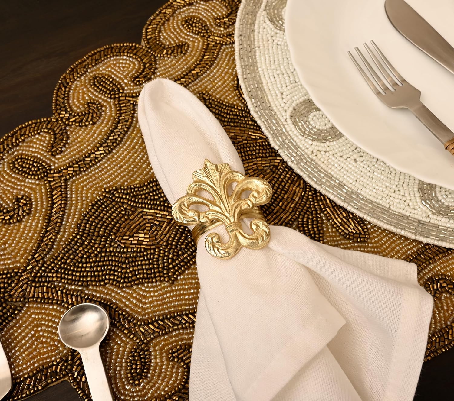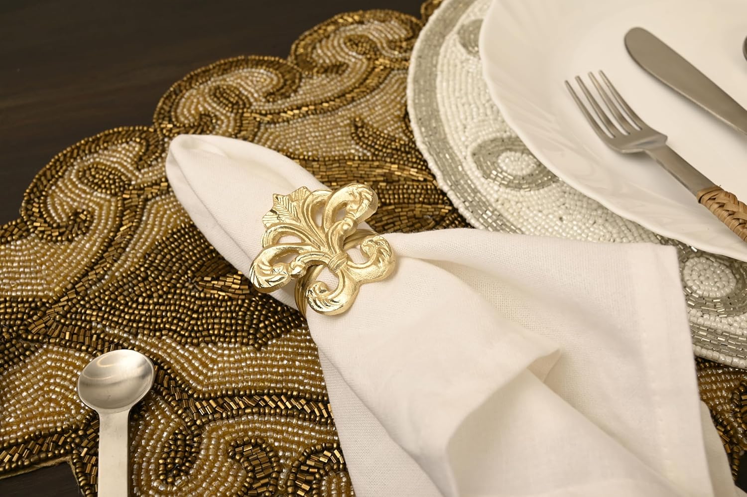 Lightweight Metal Napkin Rings Set of 12 - Fleur-de-Lis Napkin Holders for Dining Table, Weddings, and Special Events - Elegant Table Décor for Home & Restaurants (Gold) - CLEENTABLE
