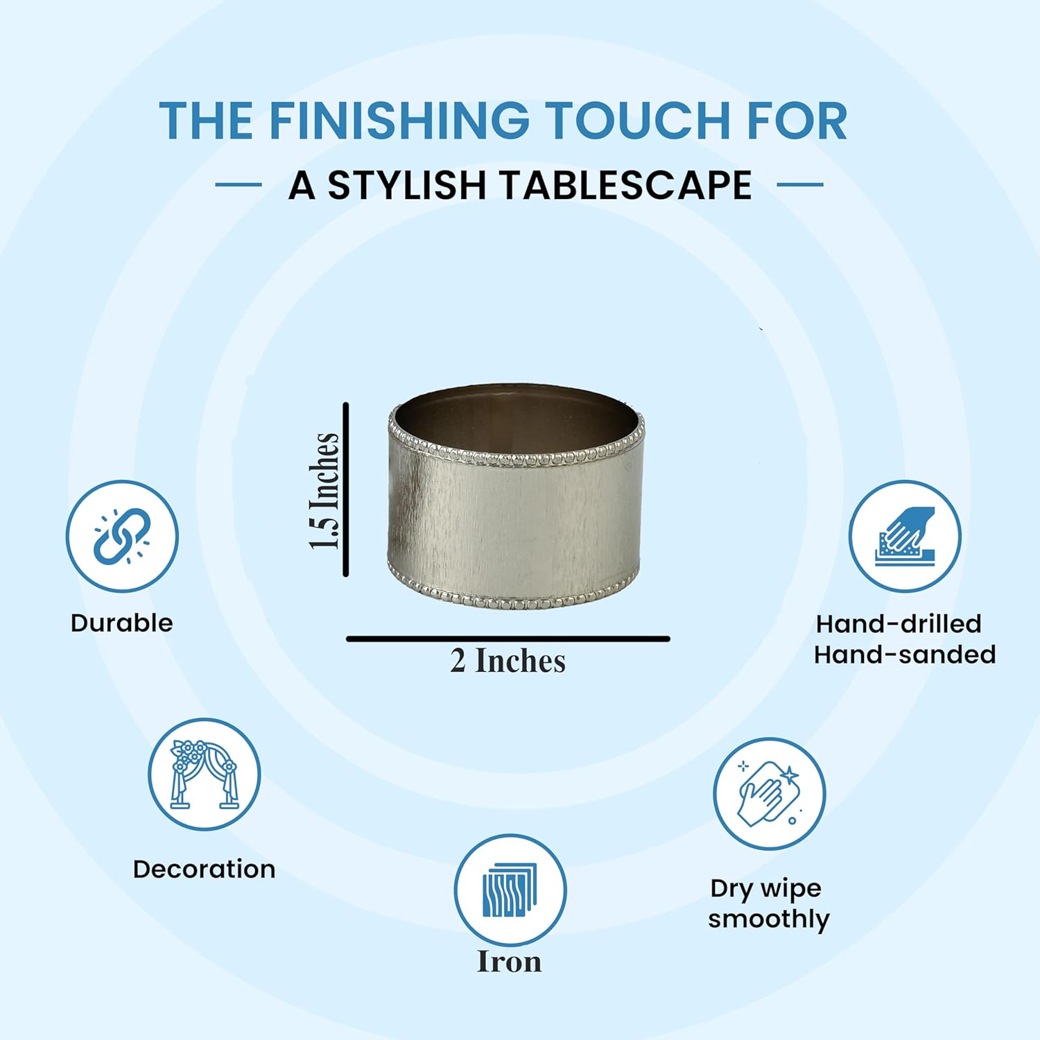 • ✅ COMPLETE SET OF 12 SILVER NAPKIN RINGS (1.75 x 1.75 x 1.25 INCHES): Perfect size, color, and pack for elegant table settings.