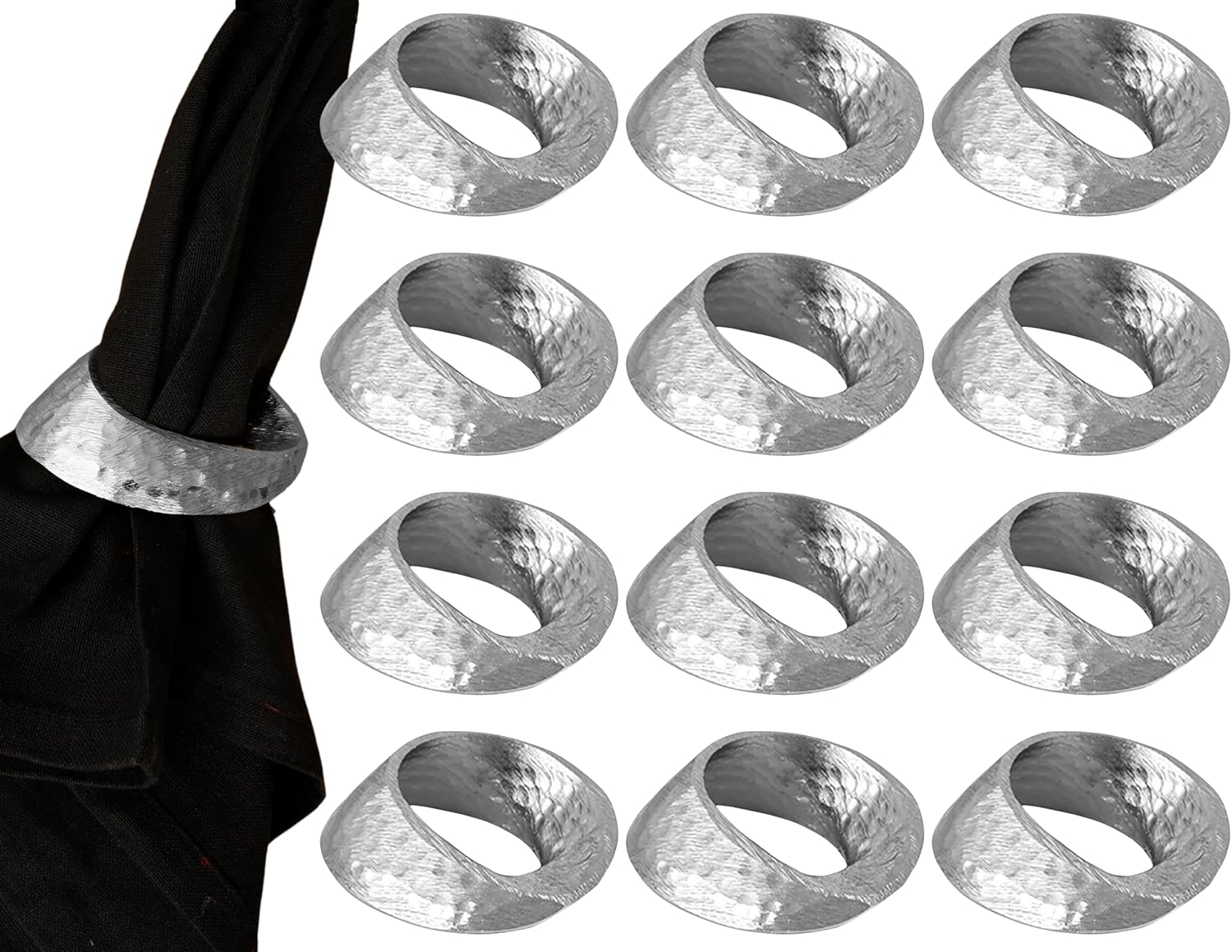• ✅ Perfect Size & Pack: Each napkin ring measures 3 x 2 x 0.5 inches, in a set of 12 silver rings - ideal for elegant table settings.