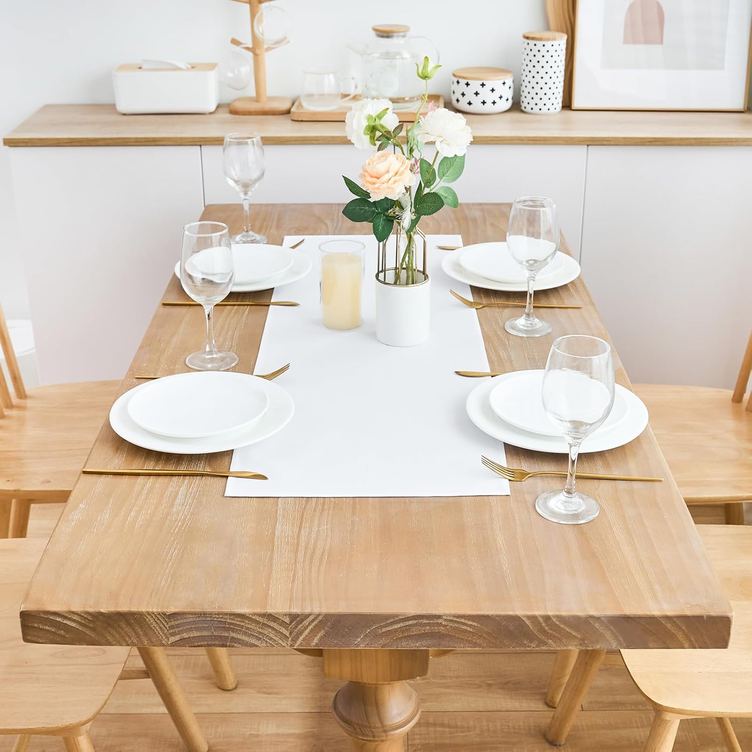 • Size Guide: Each package contains 2 PCS table runners. Each short white table runner is 12X36 inches, recommended for small tables, such as end tables, coffee tables, tea tables, beside tables, nightstands and so on. You can refer to the size table to select a solid dresser runner of the right length. There may be a slight deviation due to manual tailoring