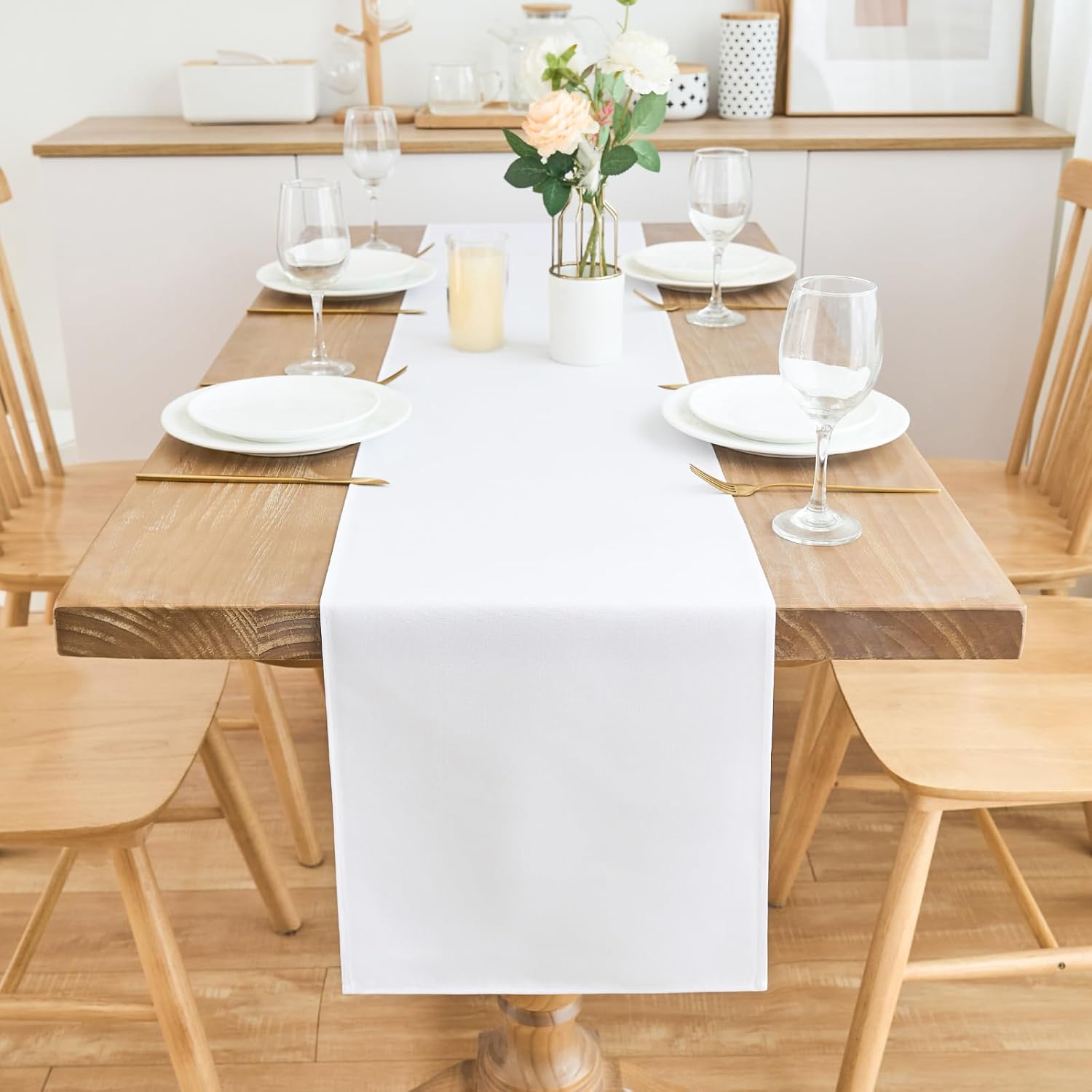 2 Pack White Table Runner 12 x 90 Inch Solid Color Farmhouse Runners Coffee Table Dresser for Daily Party Home Decoration