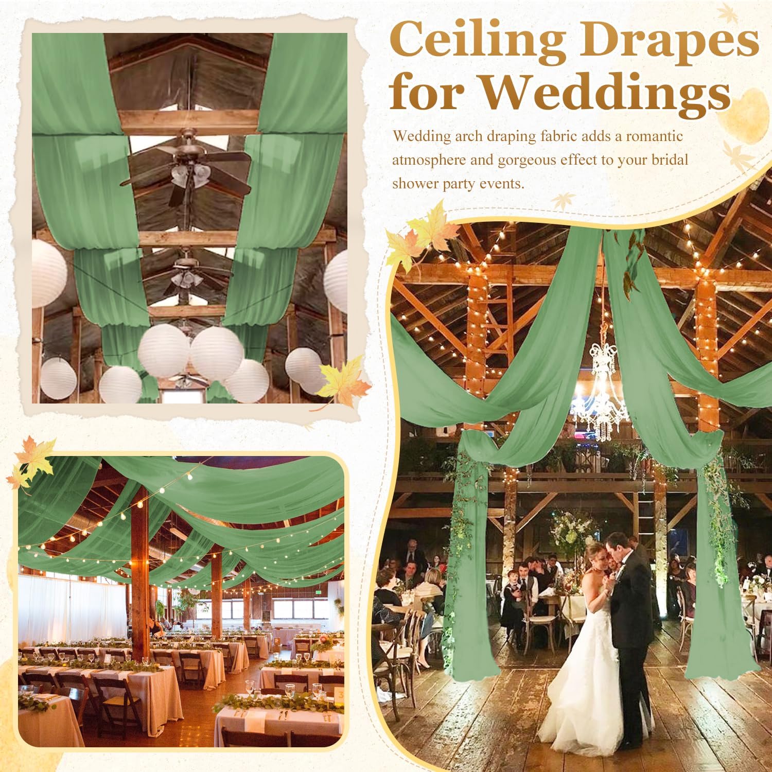 MODFUNS Ceiling Drapes for Weddings Sage Green Ceiling Draping Fabric 2 Panels 5x30ft Chiffon Wedding Arch Drapery Sheer Curtain Drapes Voile Ceiling Curtain for Wedding Party Ceiling Decor