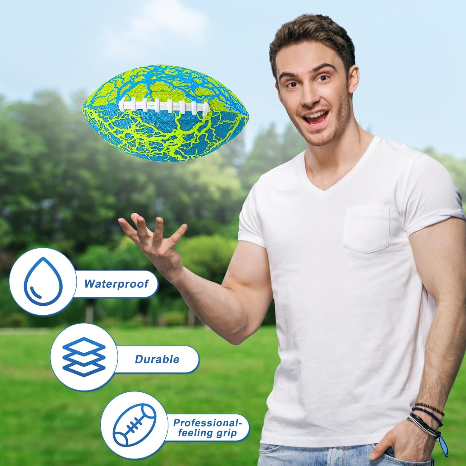 • Durable Waterproof Football - Made with high quality inflatable bladder and water-resistant soft fabric. Long lasting and waterproof. Les's play football in the water.