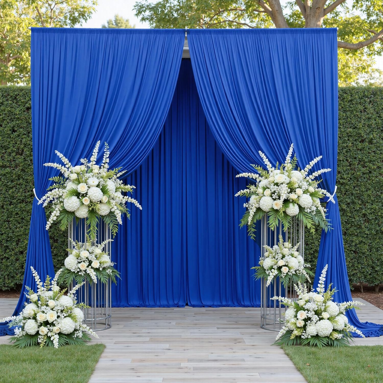 • 10ft Fabric Drape royal blue Backdrop Curtain Wide Compatibility: Polyester photo drape blue backdrop curtain can be used for parties, baby shower, wedding, birthday party, photography, bridal shower, gender reveal, zoom, princess party, engagement party, baptism, candy buffets, dessert table, sweet table, background, photo booths, photoshoot, ceremony, anniversary, graduation, home decorations, holiday party, stage curtain or just to mask unsightly areas