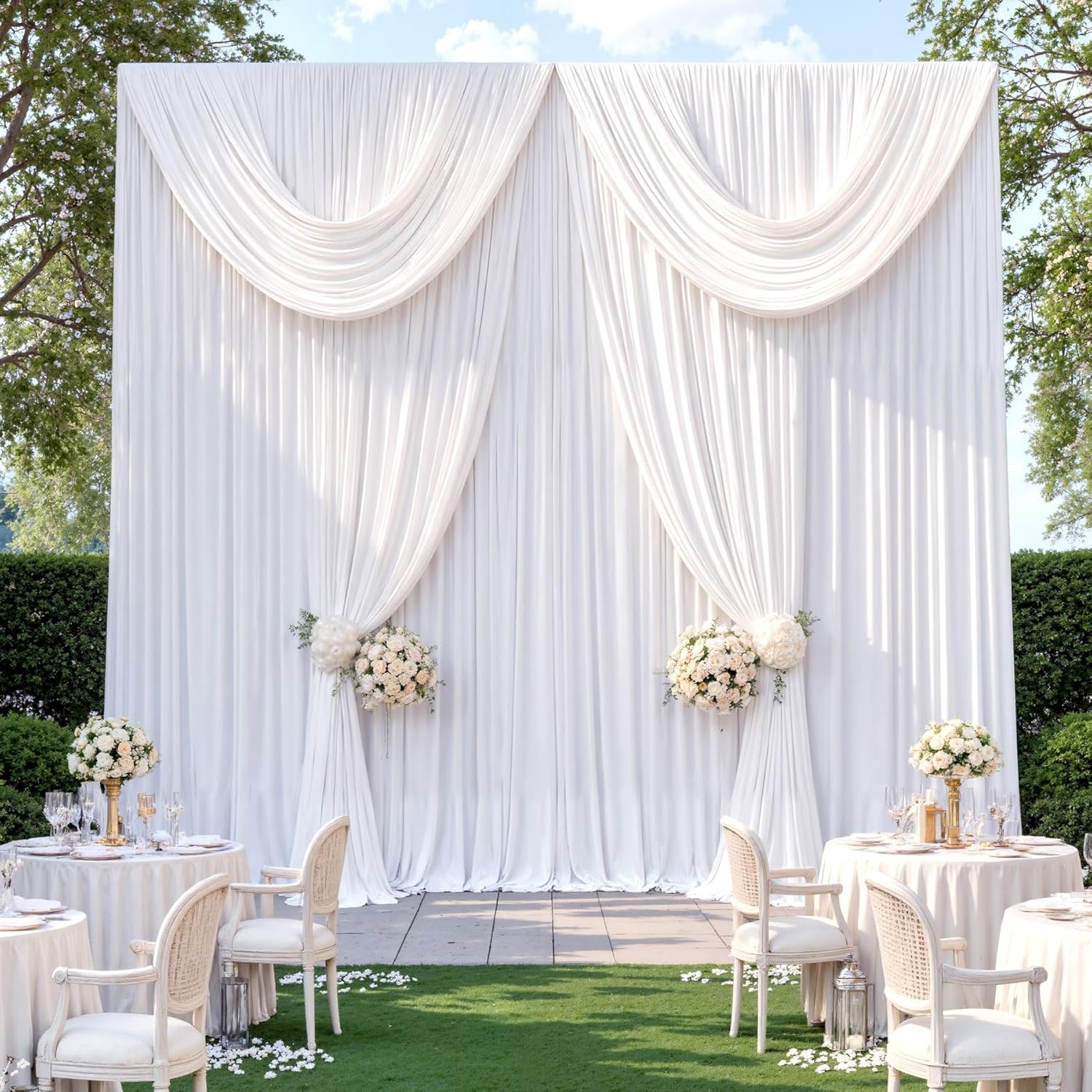 • 10ft Fabric Drape white Backdrop Curtain Wide Compatibility: Polyester photo drape white backdrop curtain can be used for parties, baby shower, wedding, birthday party, photography, bridal shower, gender reveal, zoom, princess party, engagement party, baptism, candy buffets, dessert table, sweet table, background, photo booths, photoshoot, ceremony, anniversary, graduation, home decorations, holiday party, stage curtain or just to mask unsightly areas