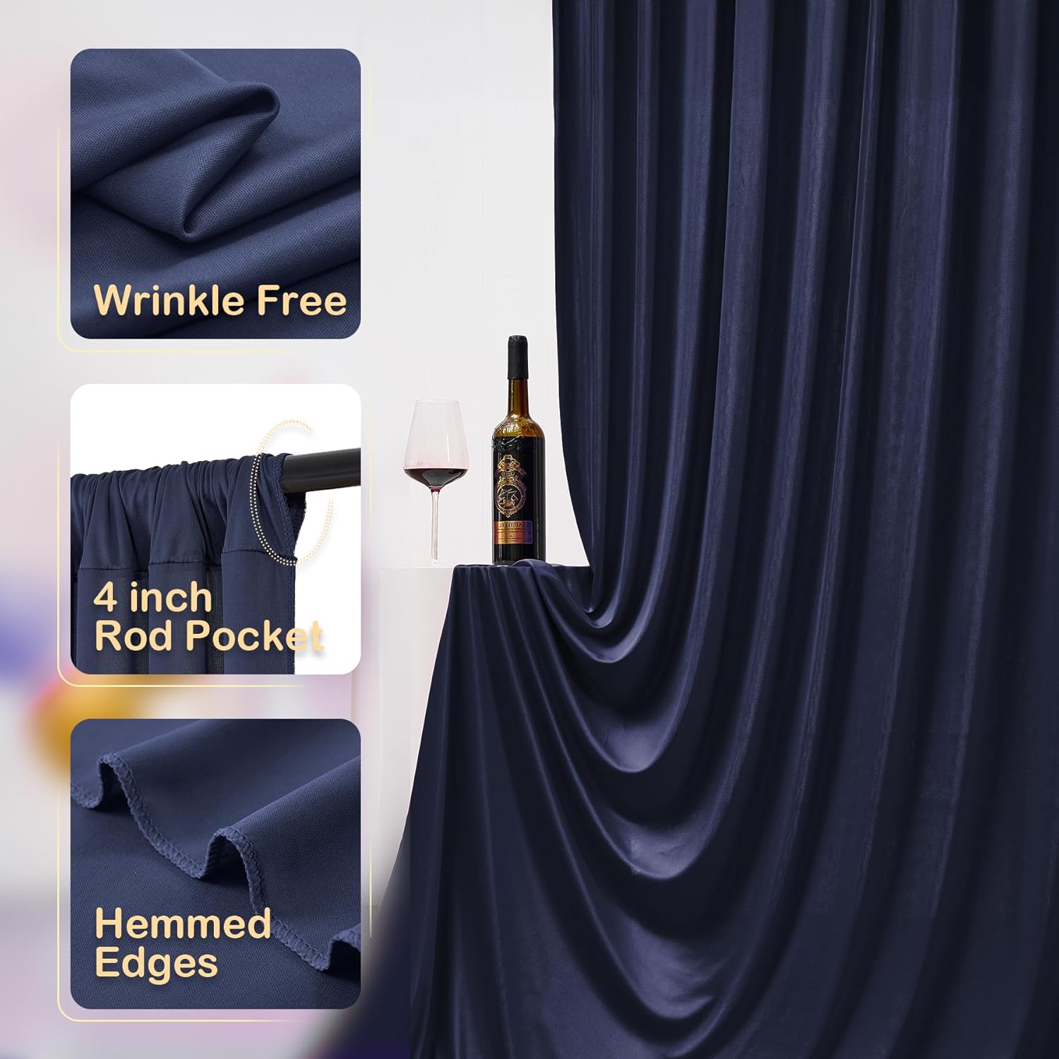 • 10ft Fabric Drape navy blue Backdrop Curtain Wide Compatibility: Polyester photo drape blue backdrop curtain can be used for parties, baby shower, wedding, birthday party, photography, bridal shower, gender reveal, zoom, princess party, engagement party, baptism, candy buffets, dessert table, sweet table, background, photo booths, photoshoot, ceremony, anniversary, graduation, home decorations, holiday party, stage curtain or just to mask unsightly areas