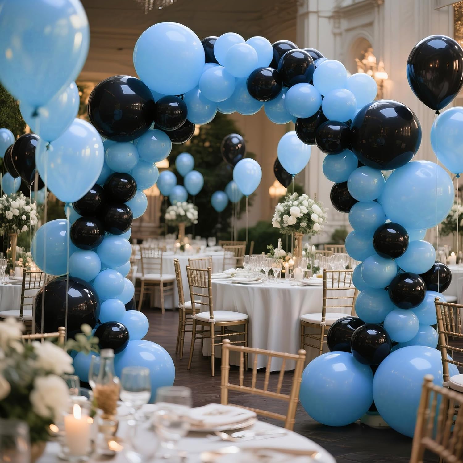 • Baby Blue balloon garland kit: 111Pcs baby Blue balloons pack, including 8 pcs 18 inch balloons, 50 pcs 12 inch balloons, 50 pcs 5 inch balloons, a 5 meter balloon chain, 100 dots of glue dots, a roll of ribbon.