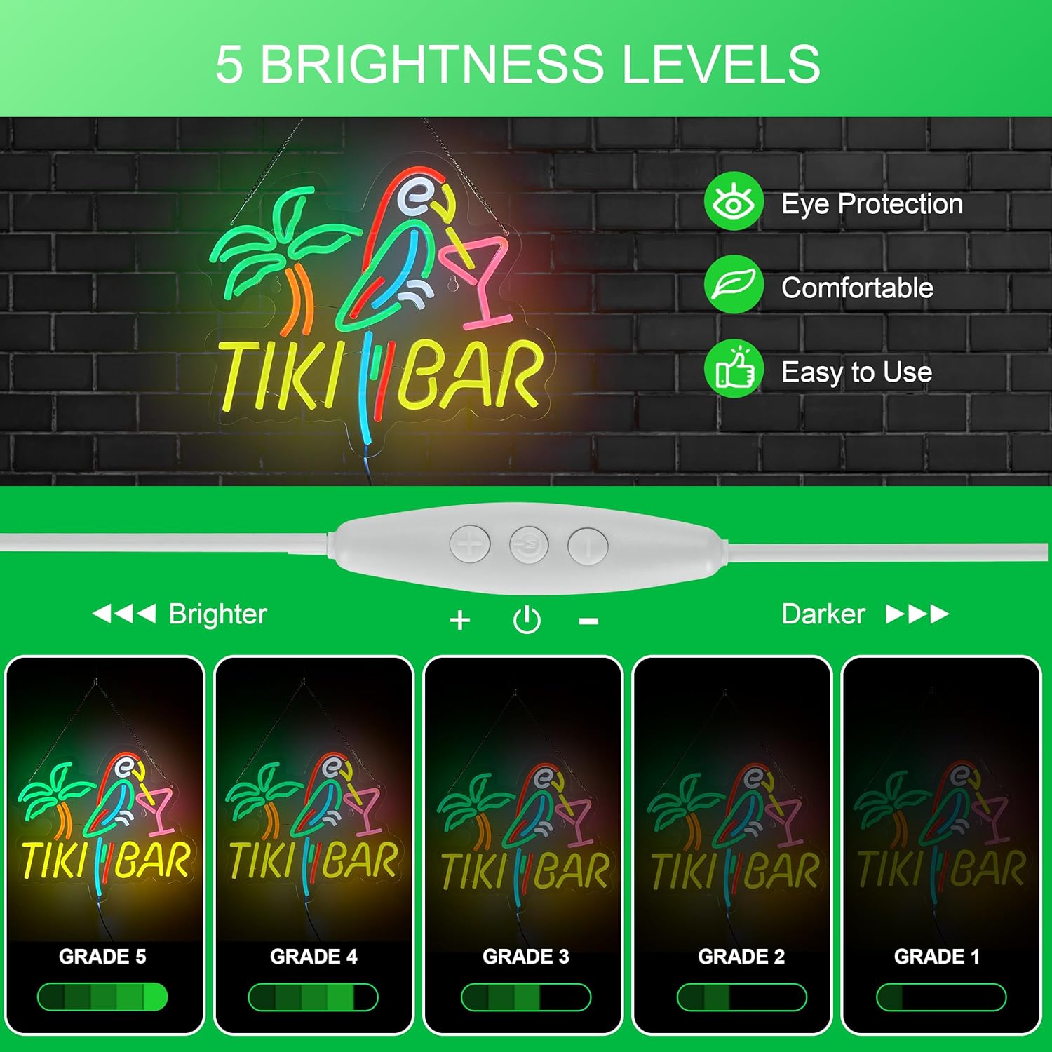 • USB connected with low power of 5V . Three levels of brightness can be adjustable by dimmable Switch