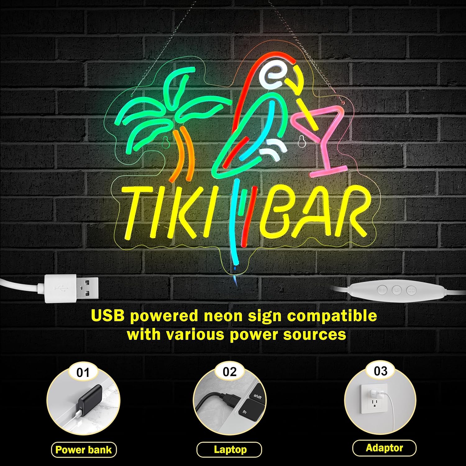 Tiki Bar Neon Sign for Wall Décor Dimmable LED Parrot Palm Tree Cocktails Signs for Beer Bar Art Man Cave Light Decor