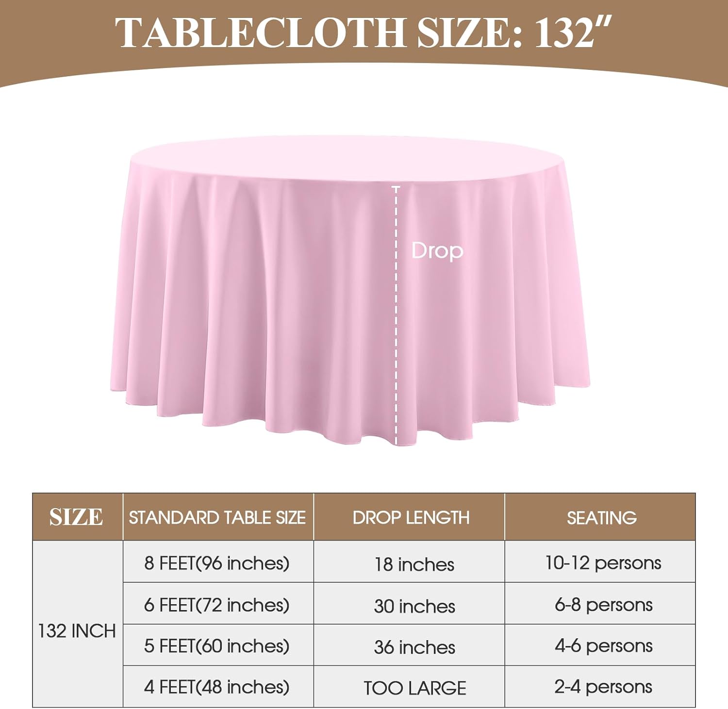 Round Tablecloth 132 Inch 6 Pack Pink Tablecloths Washable Decorative Linen Polyester Table Clothes Cover for Dining Table Banquets Buffet Parties and Wedding