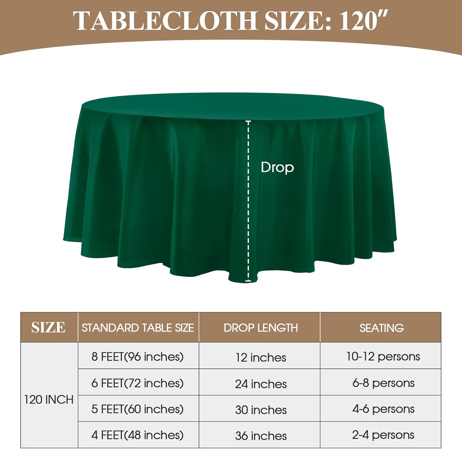 Round Tablecloth 120 Inch 6 Pack Dark Green Tablecloths Washable Decorative Linen Polyester Table Clothes Cover for Dining Table Banquets Buffet Parties and Wedding