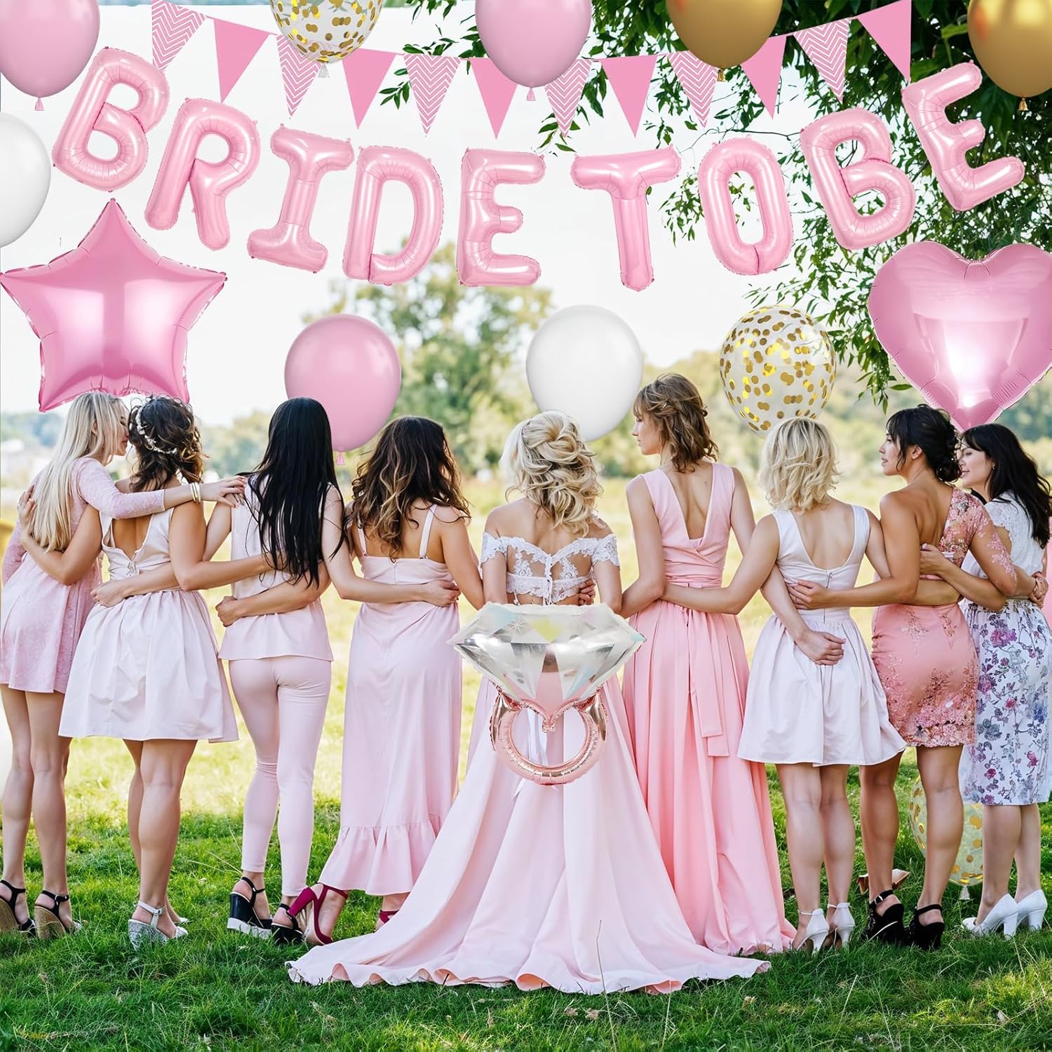 • Bachelorette Party Decorations: The pink bachelorette party decorations includes pink "BRIDE TO BE" letters balloons, pink foil balloons (star, heart)x 1, 12inch latex balloons (pink x 5, white x 4, metallic gold x 3, gold confetti x 3), diamond ring balloon x 1, pink banner x 1, glue point x 20, balloon ribbon x 1. Pink and gold wedding decorations can be used as background decorations for the bride and friends and family.