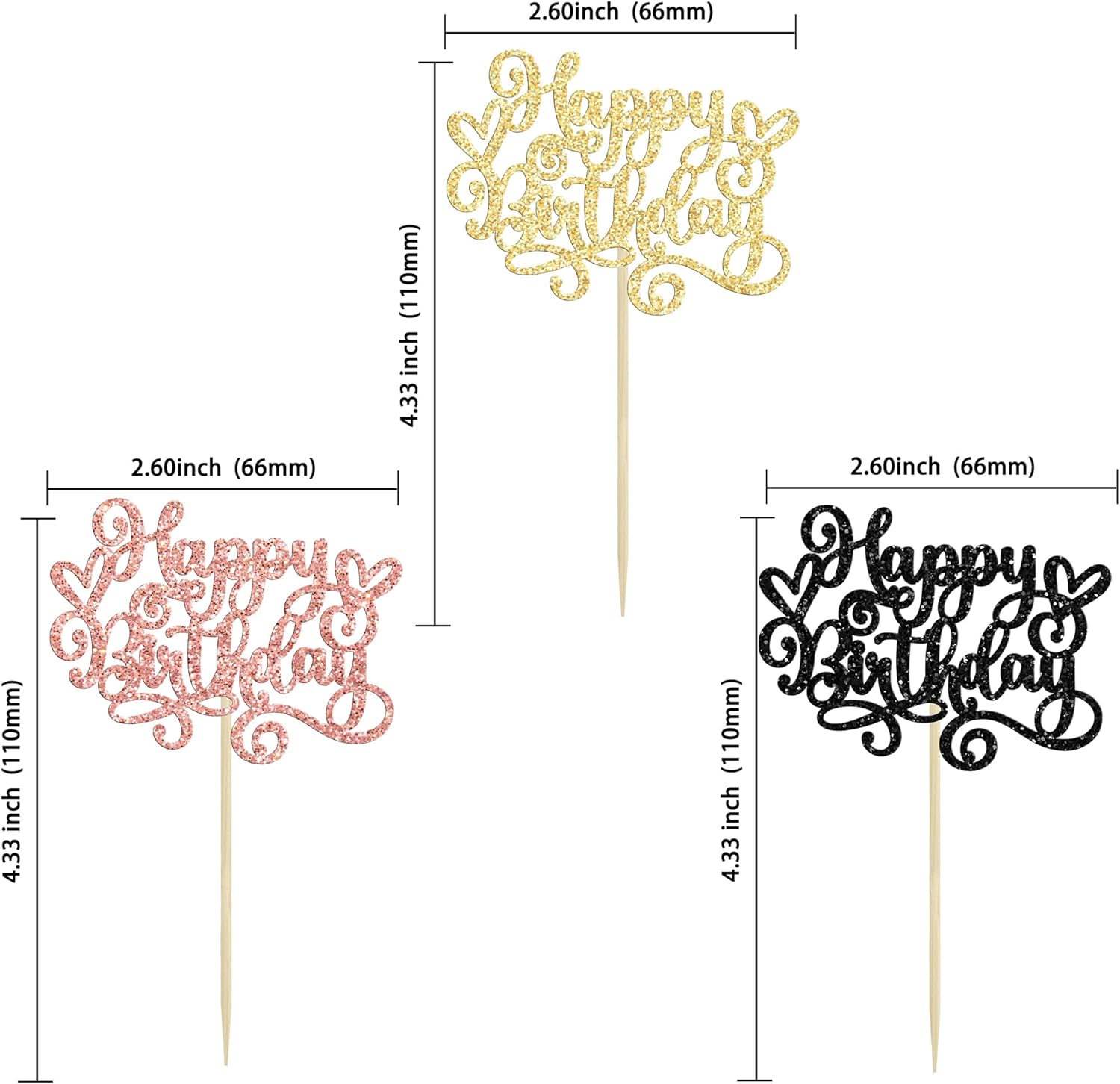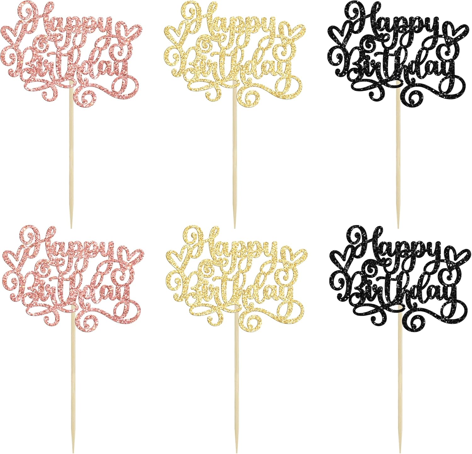 • --Premium Material: These Happy Birthday Cupcake Toppers are made of high quality 300 gram card stock and food-grade toothpick, very safe to put them on cakes, cupcakes, ice cream, fruits, pie, dessert, cheese or any dish and food appetizer you want to decorate Happy Birthday party decorations.