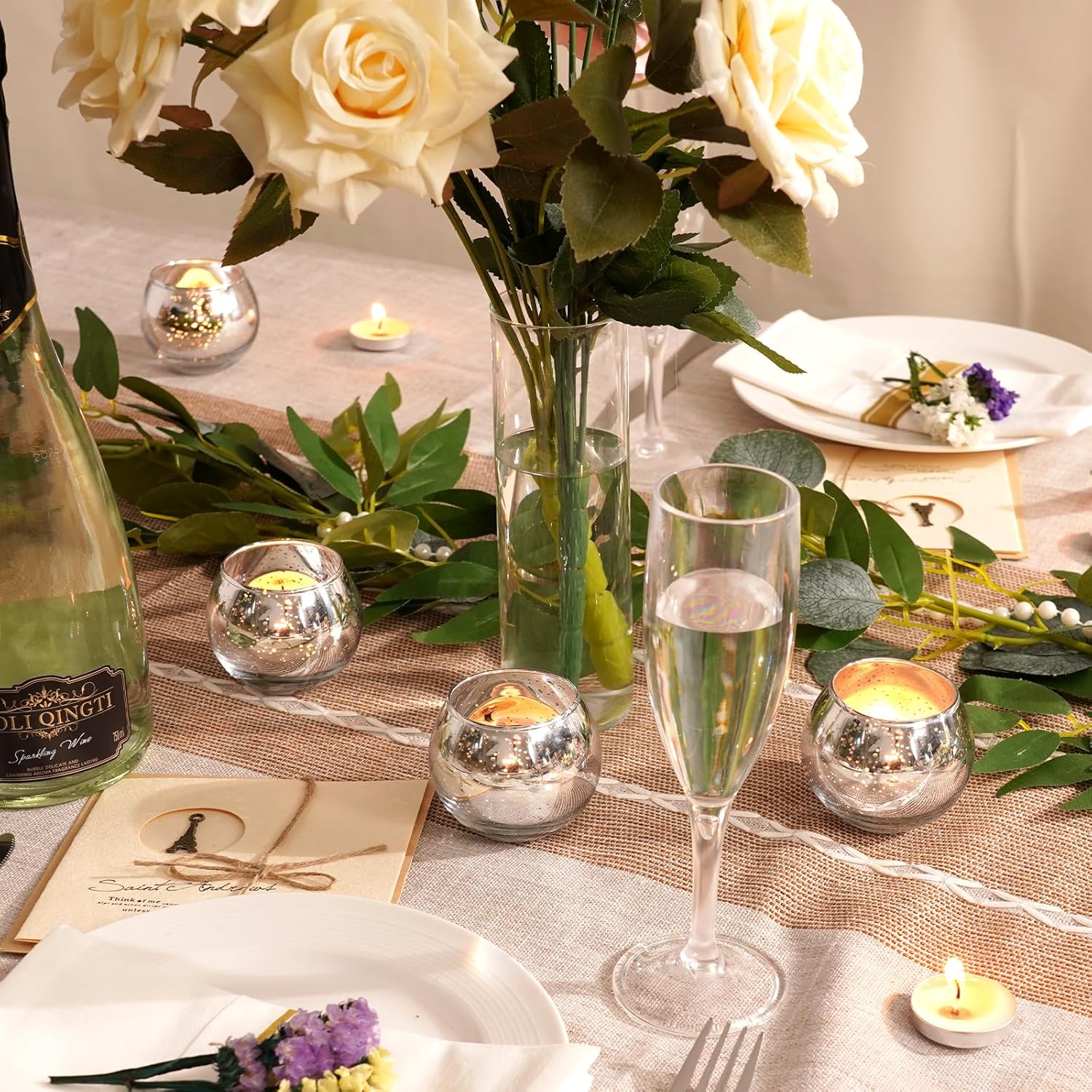 • Elevate Your Ambiance: Our stunning set of 24 silver mercury glass votive candle holders adds a dazzling touch to any setting. Light them up to watch the flickering glow dance, creating a cozy and elegant atmosphere perfect for gatherings, romantic dinners, or peaceful meditation
