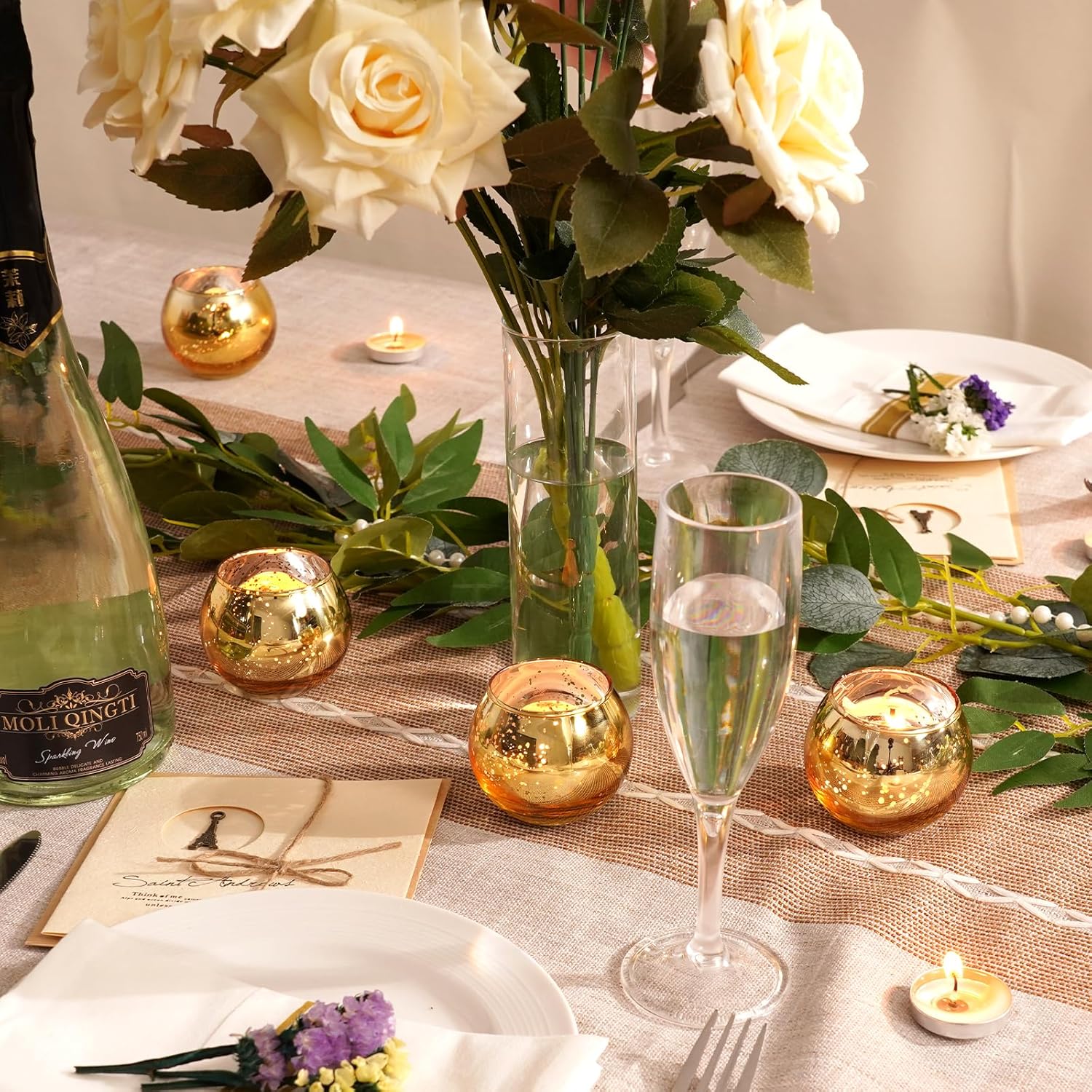 Homemory 12 Pcs Gold Votive Candle Holders, Round Mercury Glass Candle Holder, Tealight Candle Holders for Table Centerpieces, Baby Shower,Anniversary, Wedding, Home Decor, Halloween, Christmas