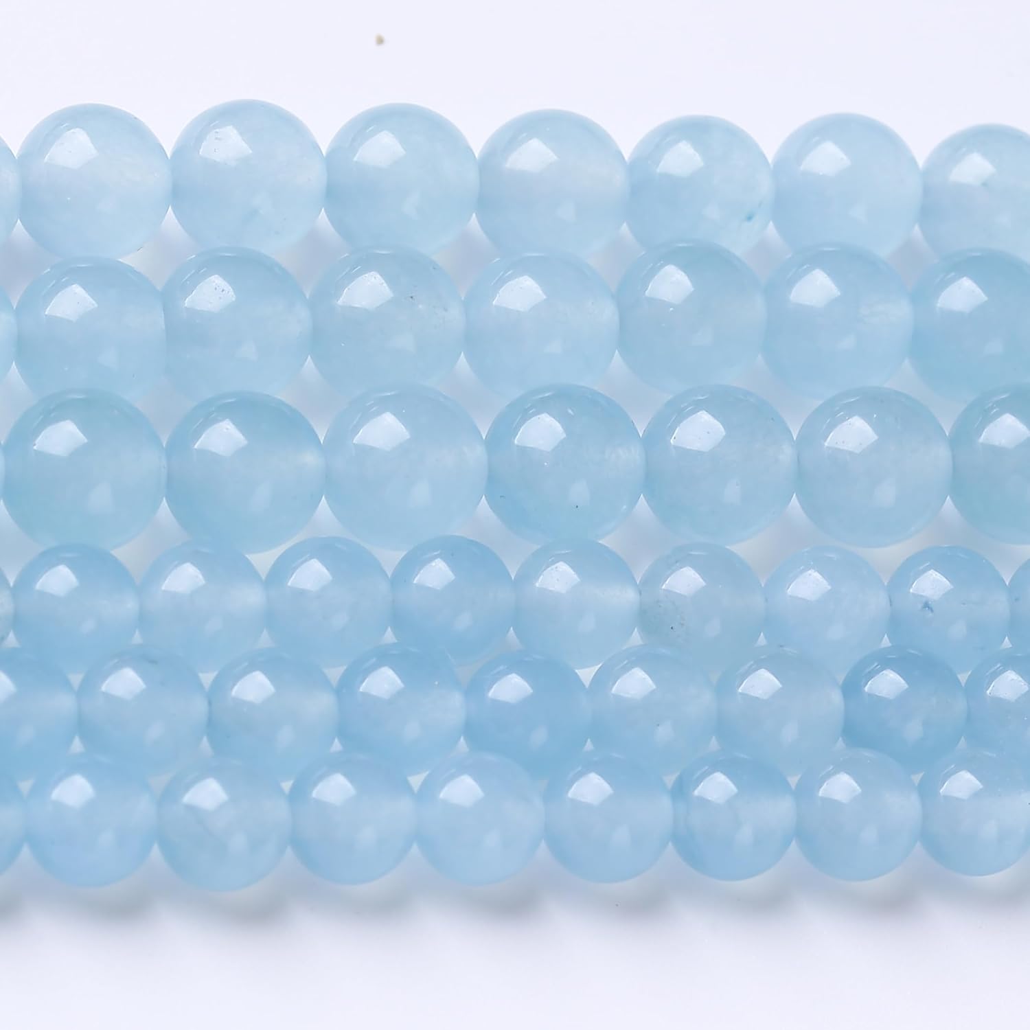 Ice Blue Chalcedony Stone Beads Gemstone Round Crystal Energy Jade Beads Stone Beads for Jewelry Making DIY Bracelet Necklace Jewelry Making 1 Strand 15.5inch 45PCS 8MM