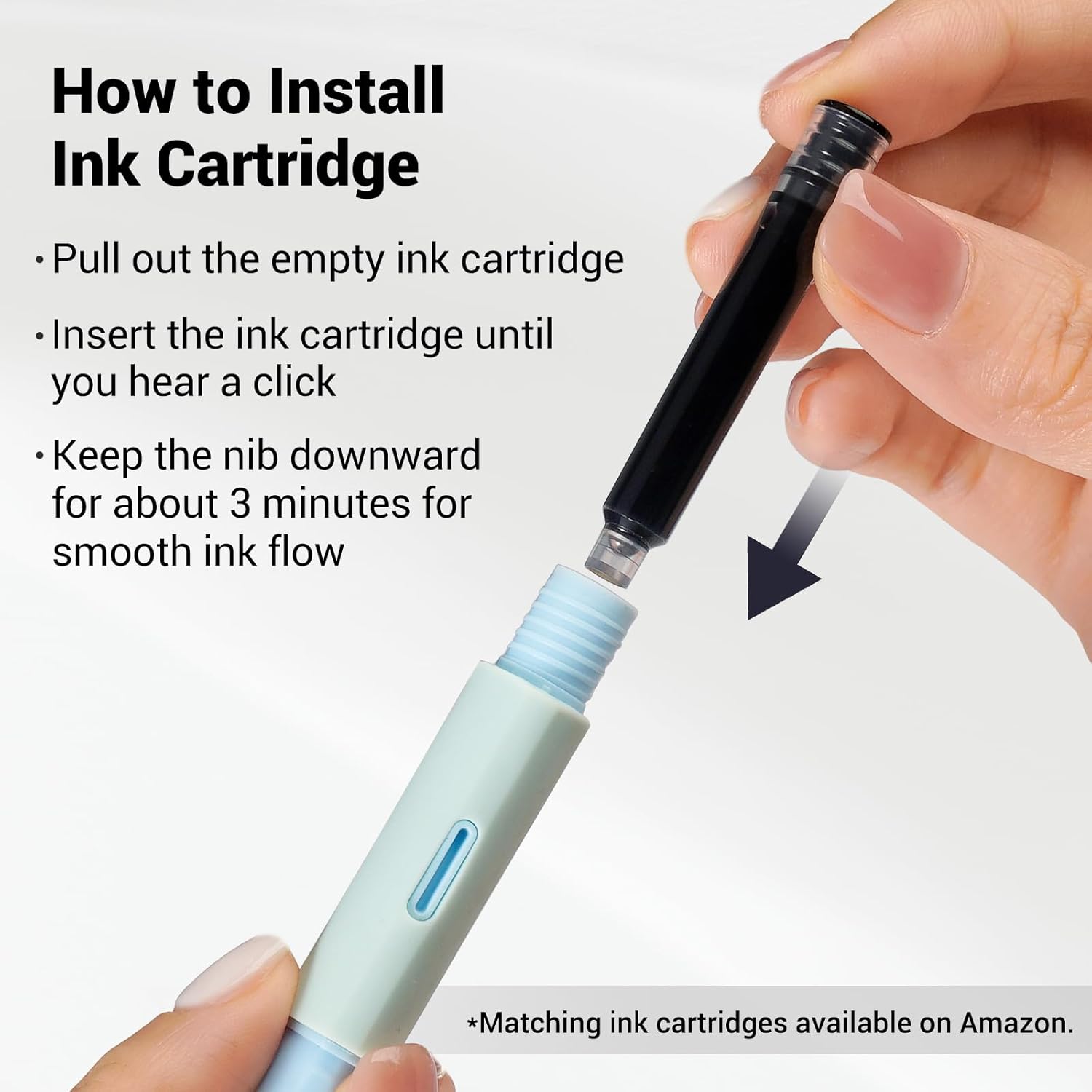 • Refillable & Long-Lasting – Comes with 3 ink cartridges and a free replacement nib, extending the pen's lifespan for high-quality writing. Additional refillable ink cartridges are available separately on Amazon.