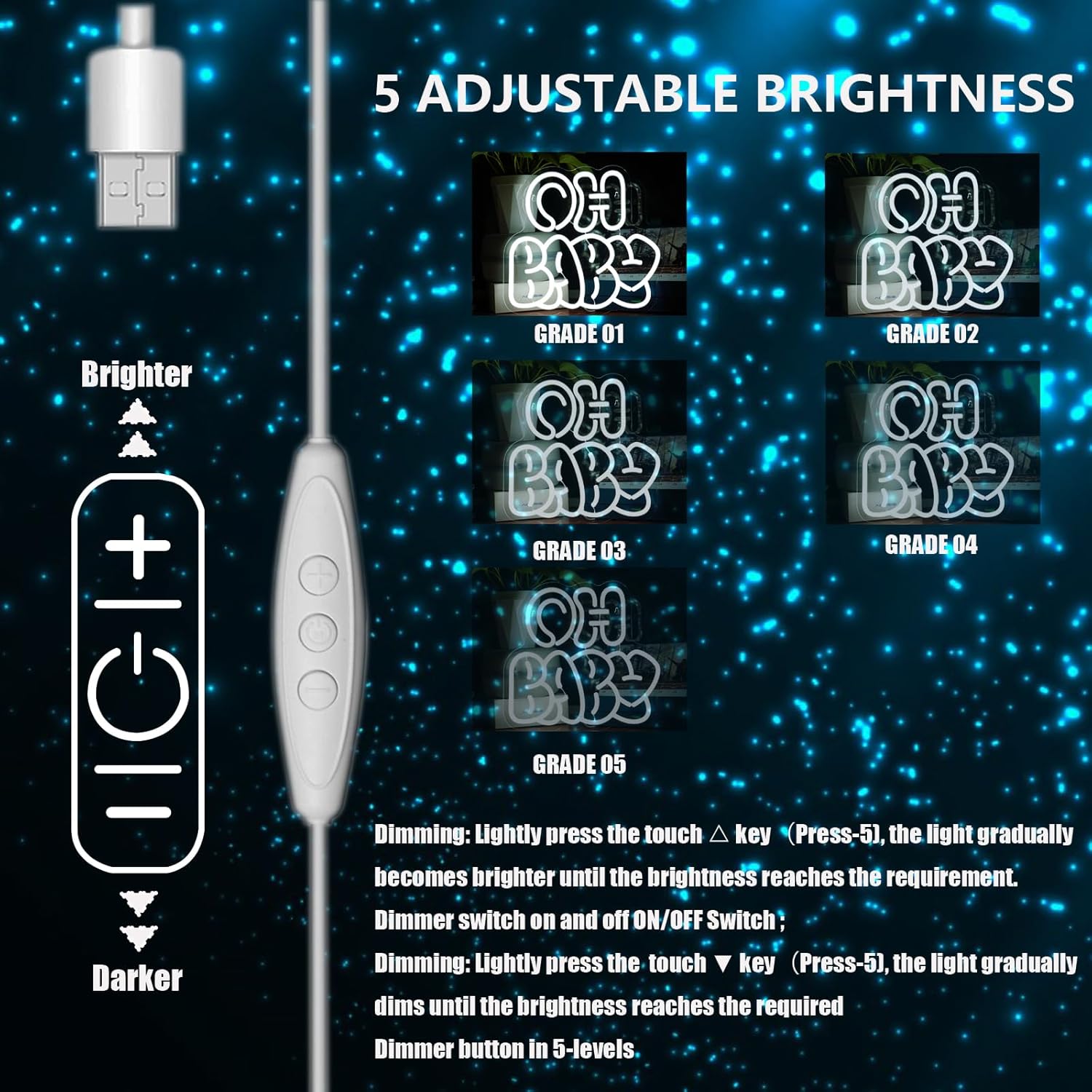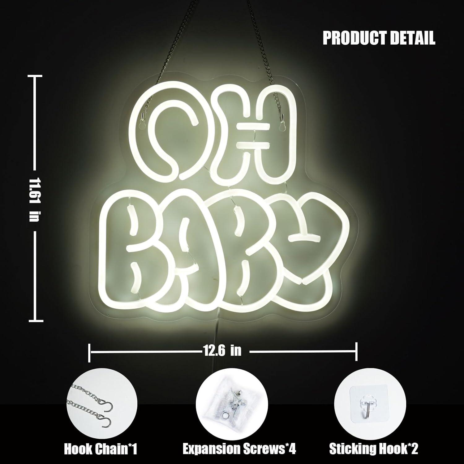 • Dimmable & Vibrant - oh baby neon sign Adjustable brightness cool white LED lights with true neon glow effect, perfect for creating ambient lighting.