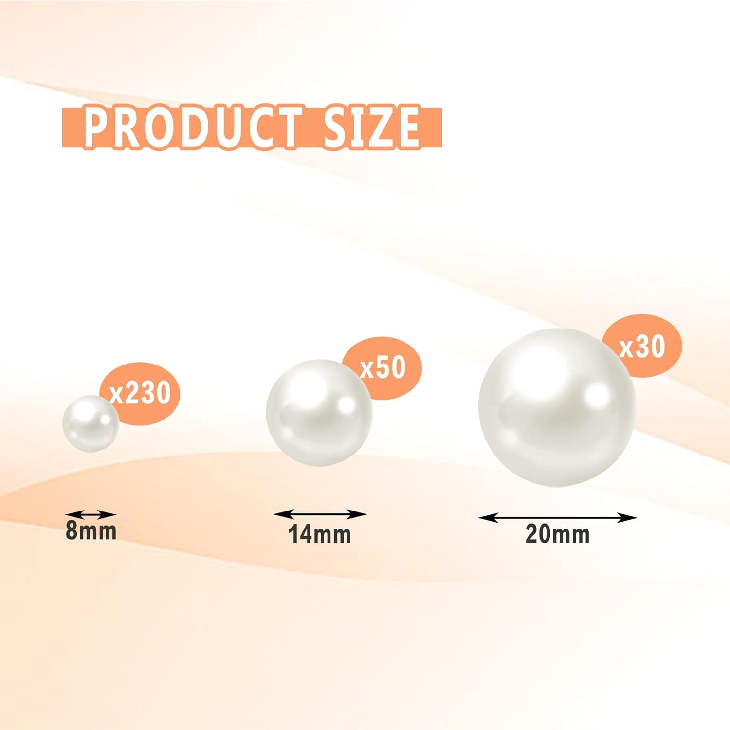 300Pcs Vase Filler Ivory No Hole Faux Pearl Beads for Vase Filling Decorations, Candle Centerpieces, Wedding Centerpieces, Home Party Decor (8/14/20mm)